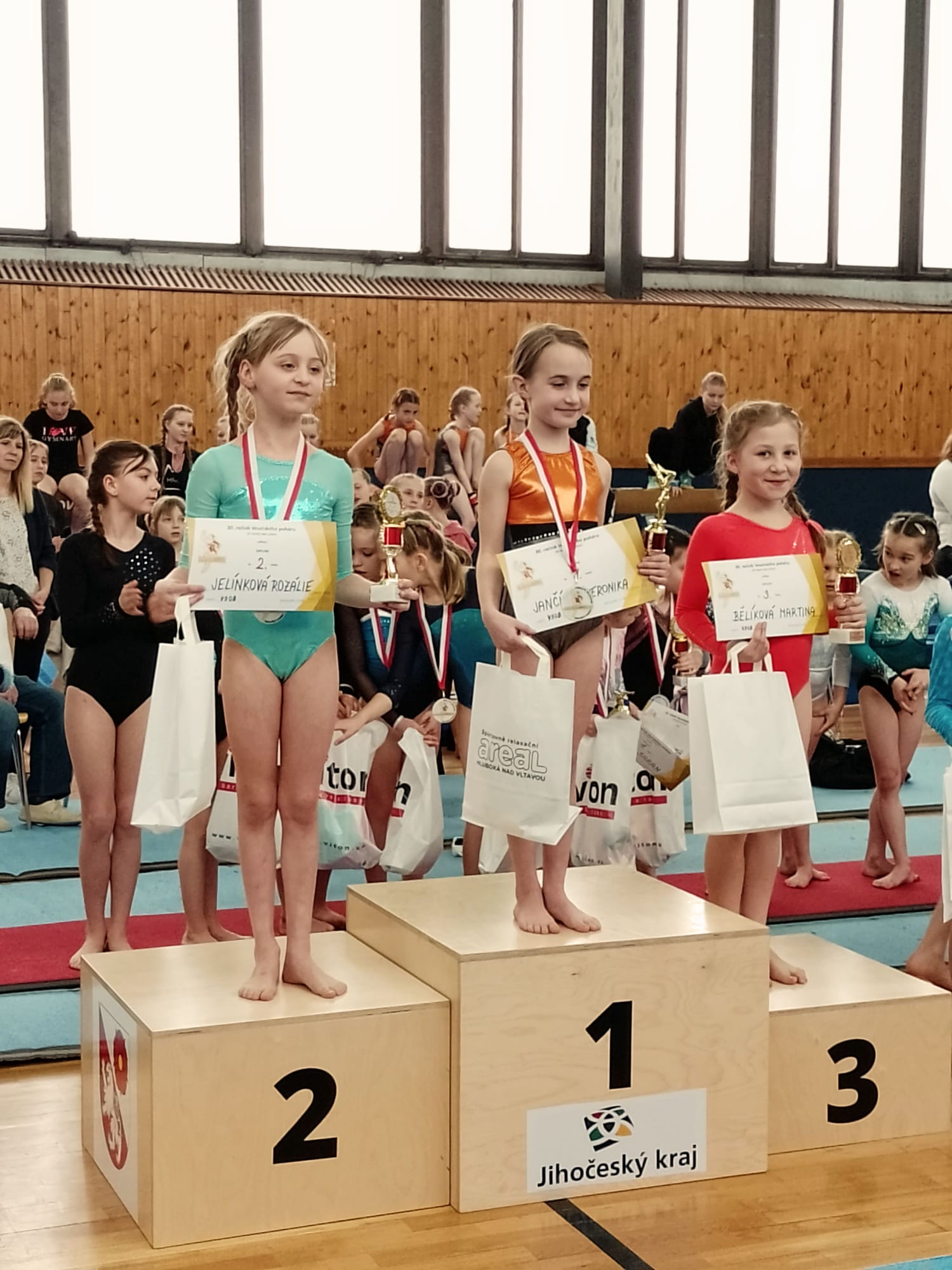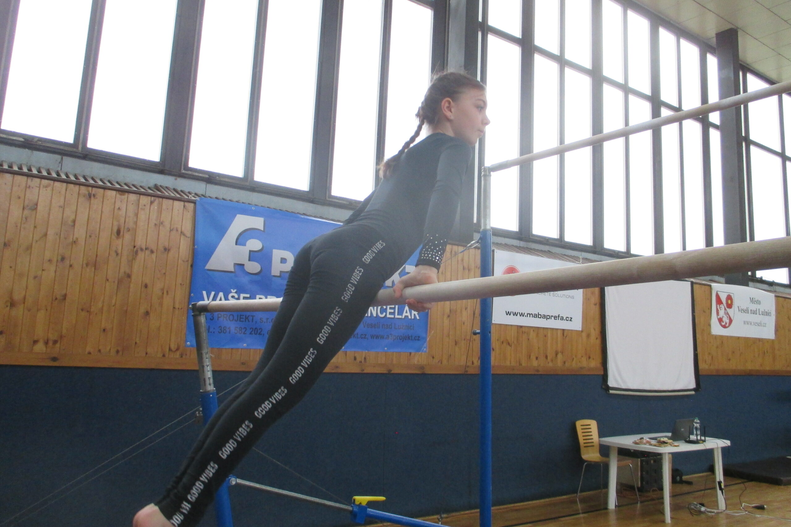A dopadlo to nad očekávání dobře. V kateg. VS0B Martince Bělíkové uteklo zlato jen o pár desetin bodu jen tím, že trochu pokazila bradla a dotkla se nohou žerdě. Zato prostná měla jednoznačně nejlepší. Ve stejné kategorii startovala také Amálka Hášová. Byly to její první krajské závody a 8. místo je slušný úspěch.