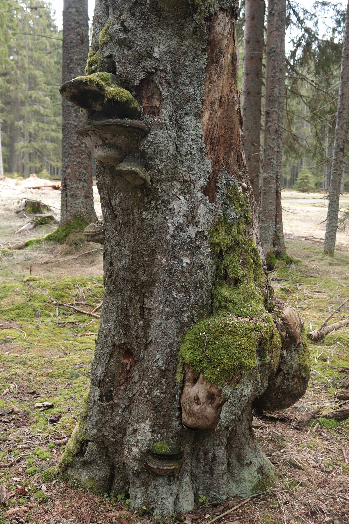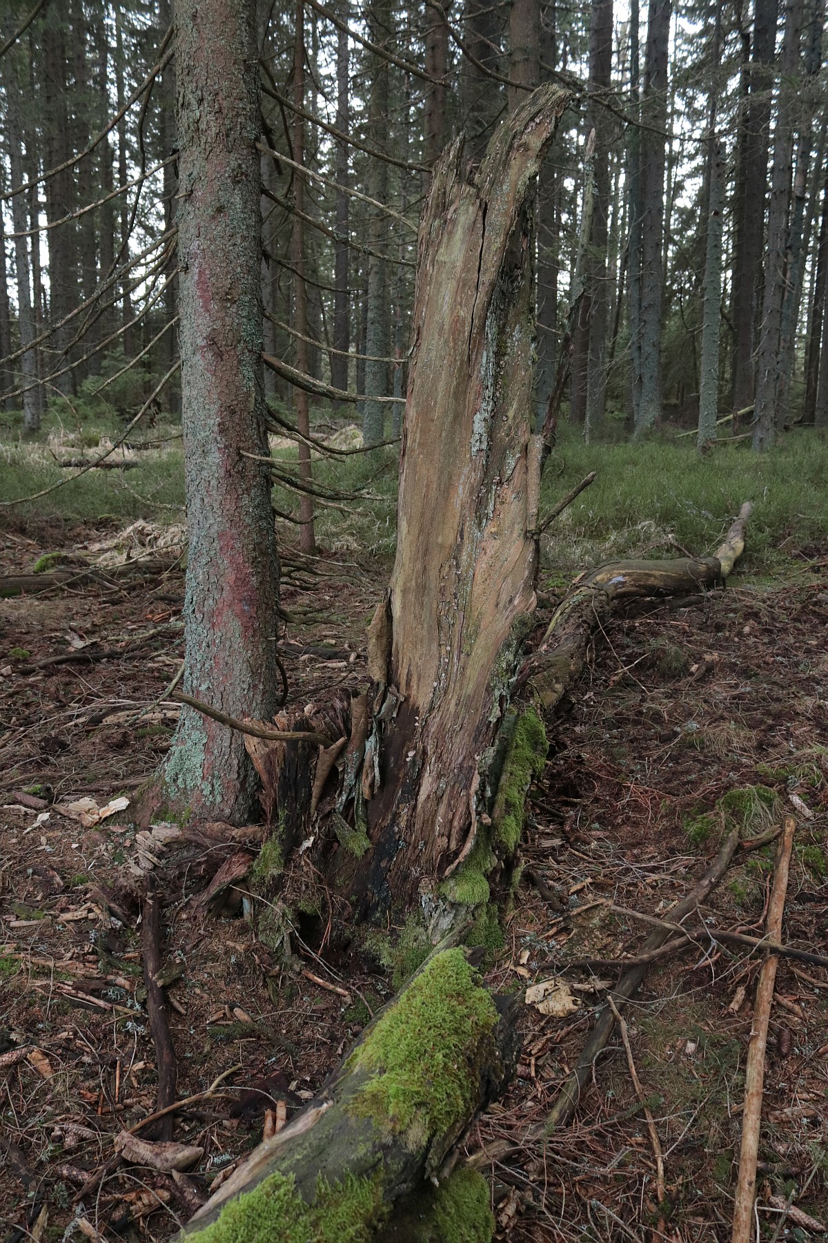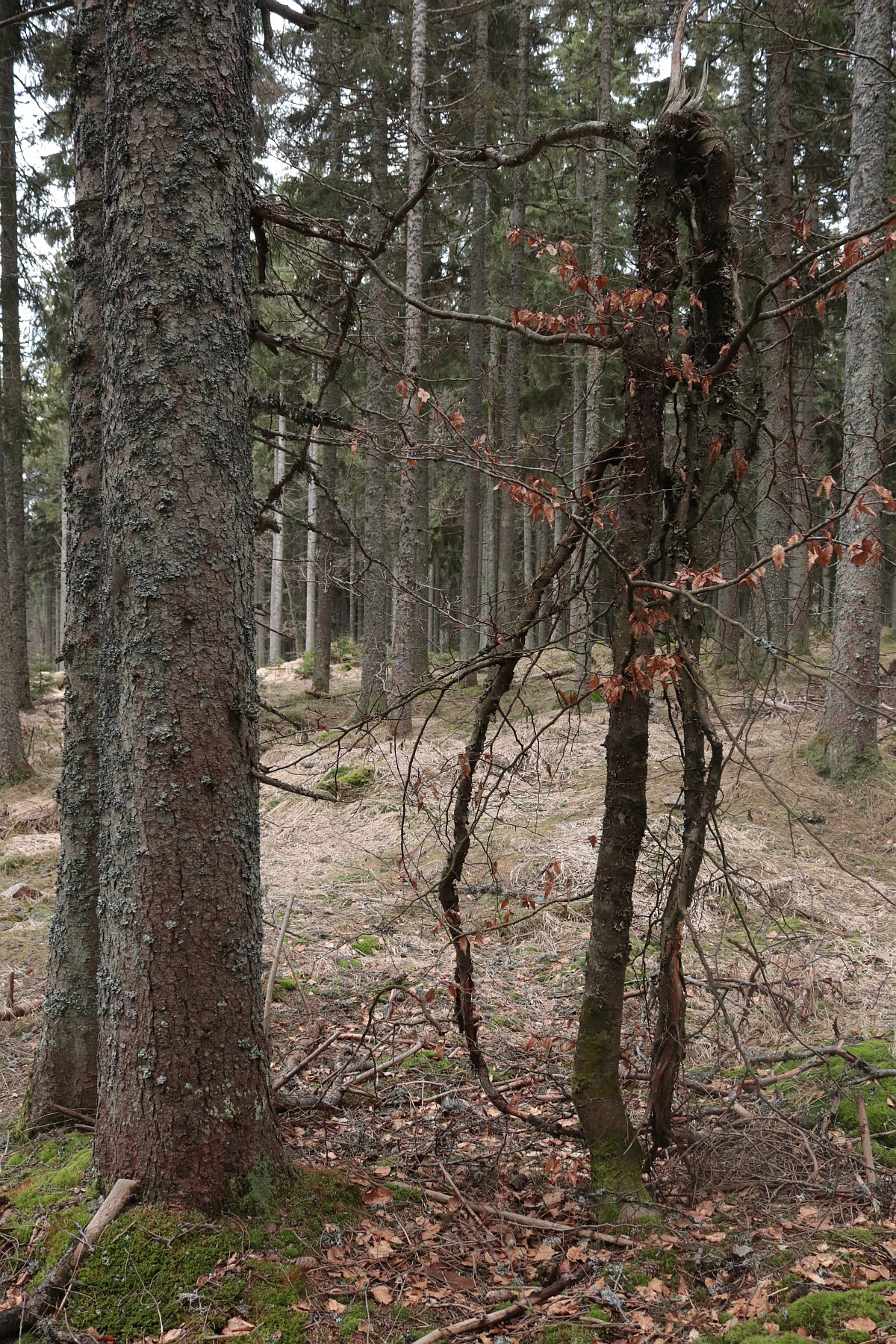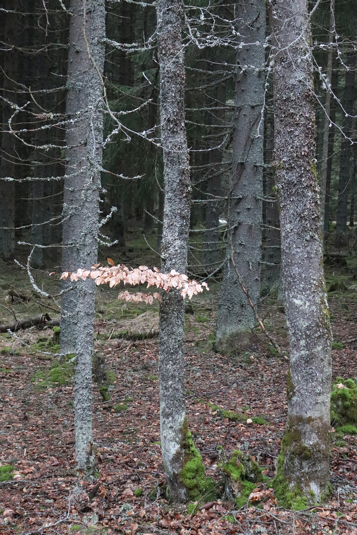 Smrkový les mě svojí monotónností nudí. Jednotlivé stromy jsou uniformní a svými přímými kmeny připomínají shluk vyzáblých těl na jakémsi shromaždišti. Snad jen ve vichřici takový les oživne. Pak se k sobě koruny naklánějí a zase se od sebe vzdalují, ale tady po oba dny vládne bezvětří. Jakmile se mezi smrky objeví pokroucený a často uhnilý kmen buku nebo javoru, hned oživnu, jako bych ve městě na betonové zdi objevil abstraktní obraz. A čím je kmen poničenější a ztrouchnivělejší, tím více fantazie ve mně probouzí. Na některých místech trčí z lesní půdy už jen pahýly někdejších urostlých stromů. Možná se rozpouštějí cestou kořenů zpět v zemi.