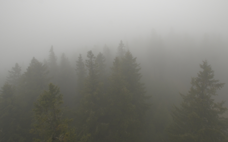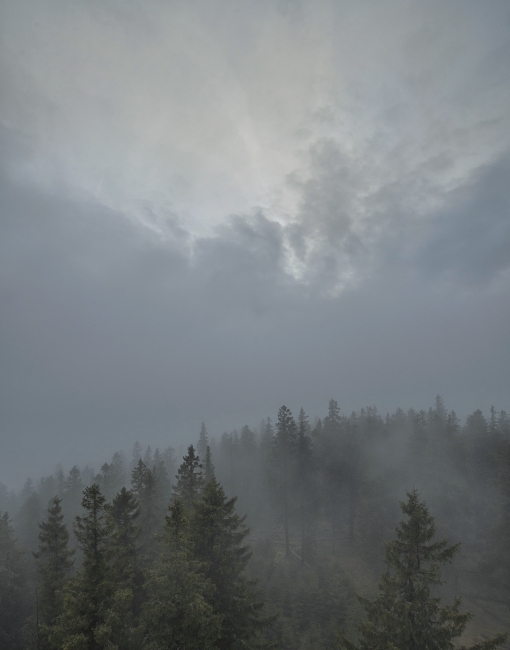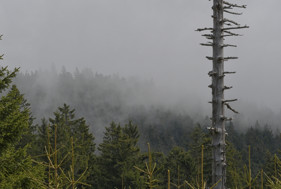 Les je tak nepopsatelně živý … teď jako by mlha náhle ustupovala stále výš k vrcholu, …