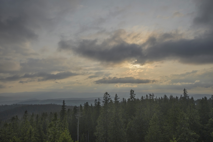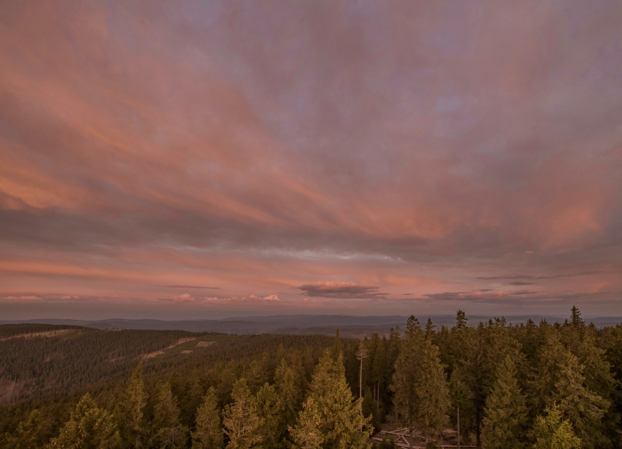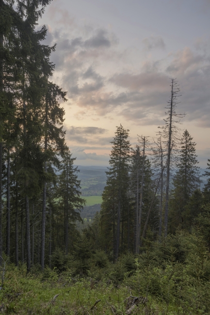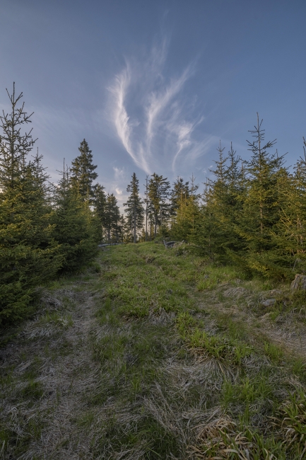 … a podvečerní cesta na Boubín přinesla již během výstupu vzhůru změnu celkové, původně i navzdory bohaté kumulovité oblačnosti, jíž byla modrá obloha bohatě poseta, přívětivé nálady.