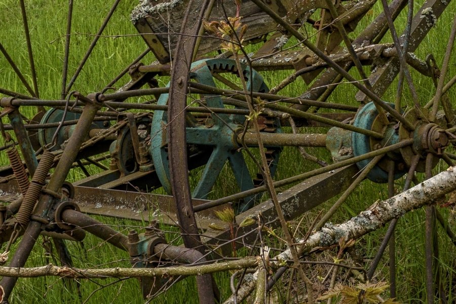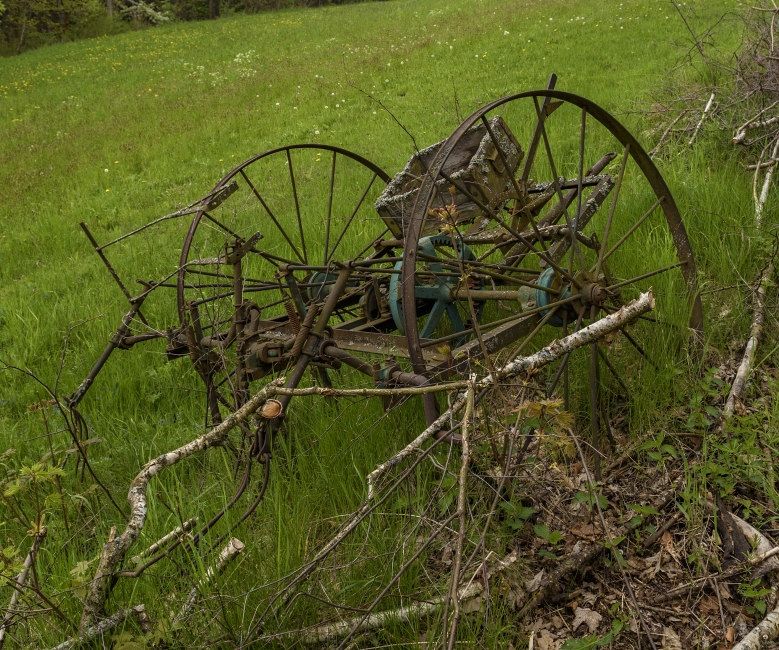 Tytam jsou časy, kdy tahle na svou dobu důmyslná mašinka, tažena koníkem či v této úpravě traktorem, odváděla na senem provoněných loukách bezvadnou práci a šetřila nejedny lidské ruce s hráběmi.