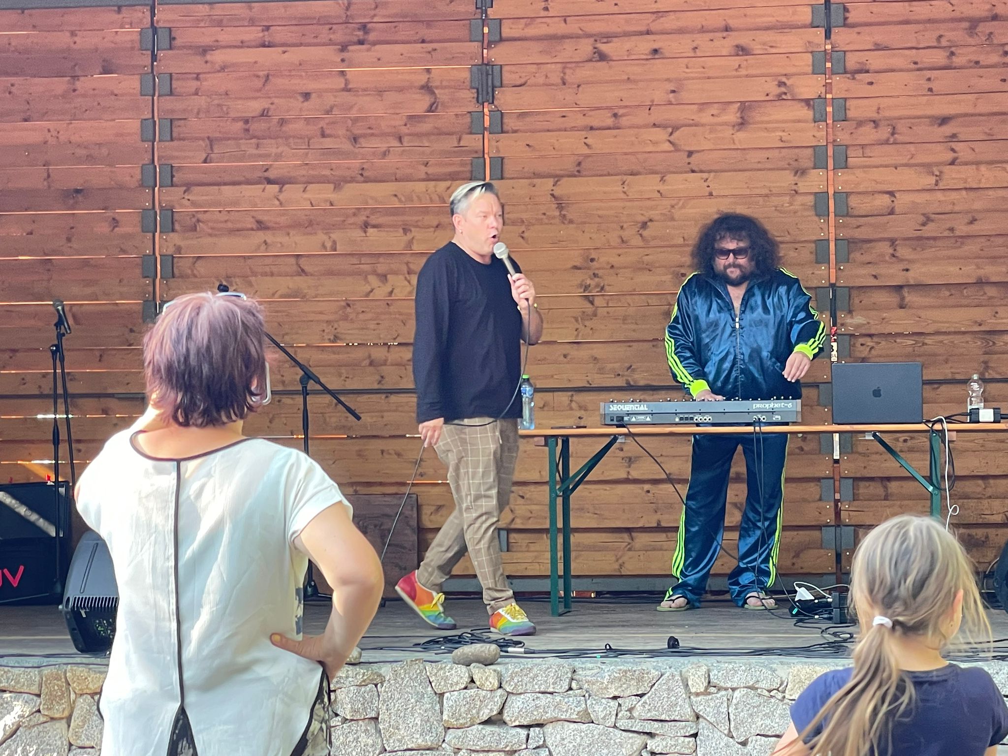 Rodiče si mezitím mohli poslechnout písničky Toníka Yettiho Jelínka, který akci přijel podpořit až z Kralup nad Vltavou. Na pódiu jej pak vystřídala trampská skupina Štreka z Klatov s výborně zahranou country. Vytřídal je opět Toník Yetti Jelínek a tak si to příznivci trampské muziky pořádně užili. Moderátor Přemysl Čech, rodák ze Sušice, si o přestávkách mezi skupinami zval k rozhovoru pořadatele i účinkující, všichni přítomní se tak dozvěděli, za co dávali dobrovolné vstupné, co se s jejich penězi stane, čemu pomohou a jak bude po vybrání cílové částky oprava probíhat. Pavel Horejš se svou skupinou My4 se postaral zase o fanoušky jiného stylu muziky a pomalu se všichni těšili na slíbenou dvojici Matěj Ruppert a Roman Holý. Přišli oba ve velice vstřícné náladě a přesto, že slíbili krátké vystoupení, protože M. Ruppert pospíchal do Prahy na další vystoupení, oba řádili na pódiu bezmála půl hodiny.