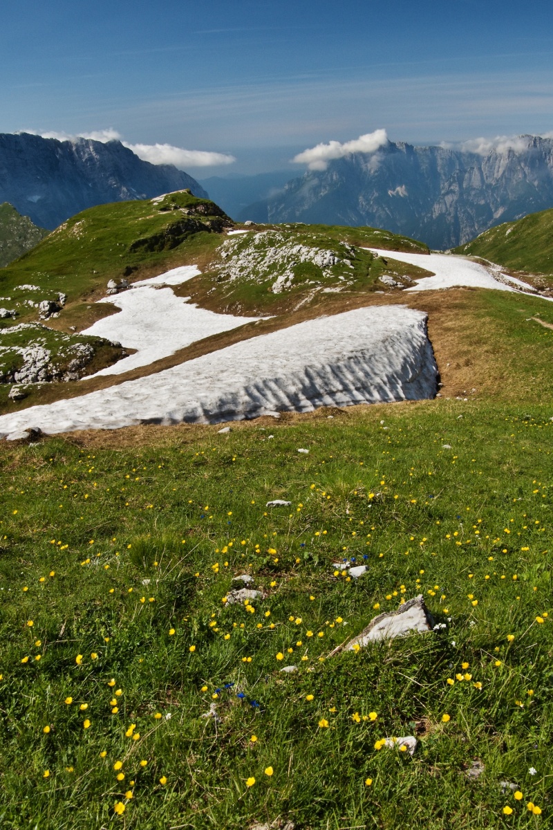 Opět jsem navštívil nádherné Julské Alpy ve Slovinsku, letos tam mám naplánované 4 cesty. Minulý týden jsme navštívili s bezva partou mladých lidí oblast Bledu, Bohinjského jezera, vyjeli na Vogel, navštívili planinu Zajamniki na Pokljuce, soutěsku Mostnica, vodopády Peričnik, Šunikov a Virje, došli ze sedla Vršič na Sleme s krásnými výhledy na horu Jalovec 2645 m, část výpravy vylezla na okno v Prisojniku, prošli jsme část doliny Trenta se známými Kority a z Mangrtského sedla zdolali horu Mangrt 2677 m. Nahoře na horské cestě byly ještě místy 2 m sněhu. Pohostinnost pohodových lidí, ochutnávky sýrů a vín, dobrá káva, koupání v průzračných tůních a řekách, pozorování kozorohů a bohaté květeny i návštěva dobře vybavených informačních středisek Správy Triglavského národního parku, to vše patří k návštěvě a poznání těchto krásných hor. Přiznám se, že je to tam můj “druhý” domov.