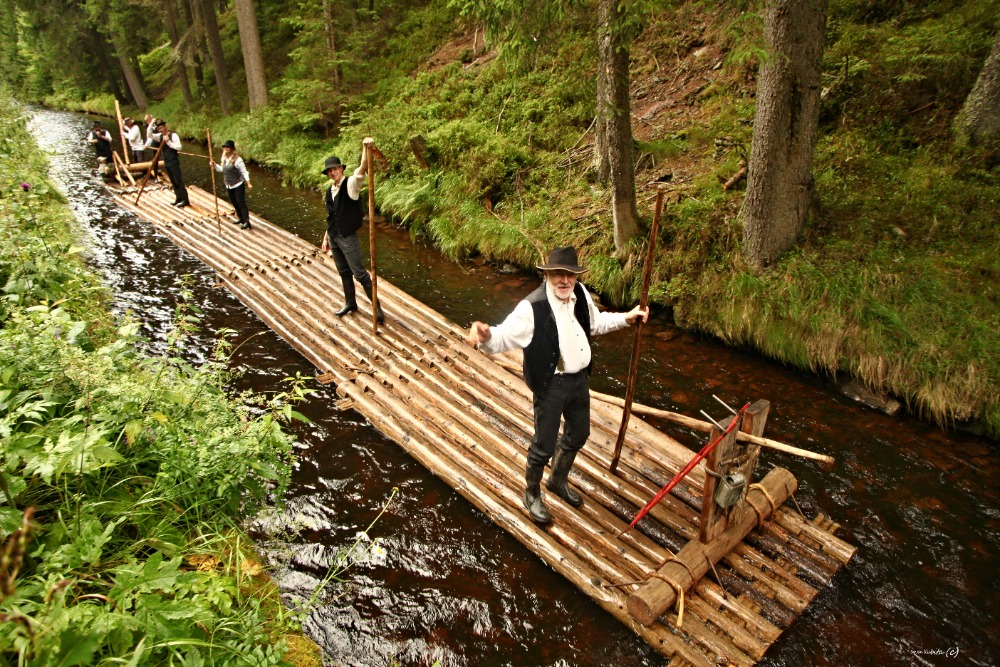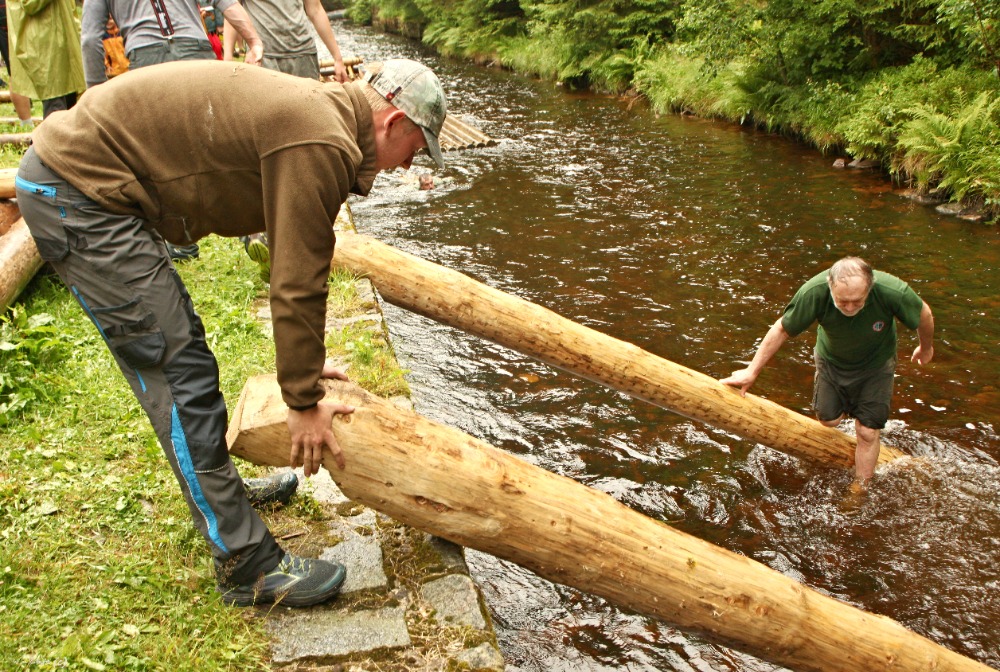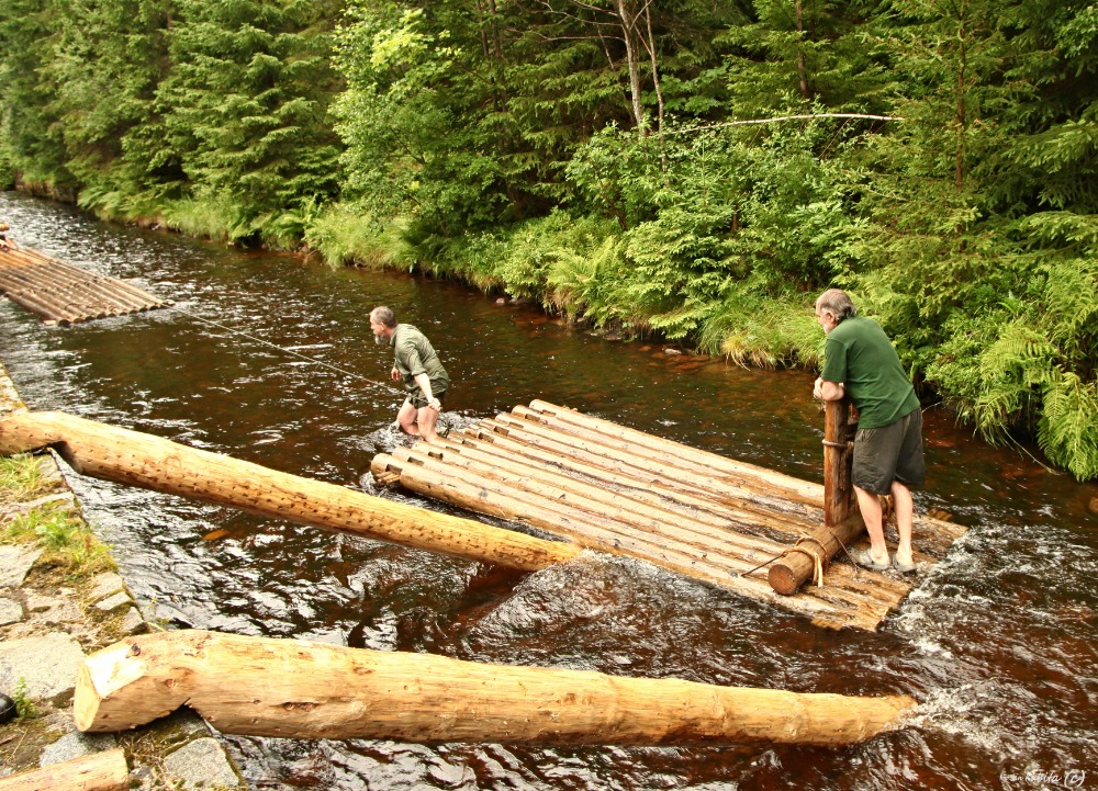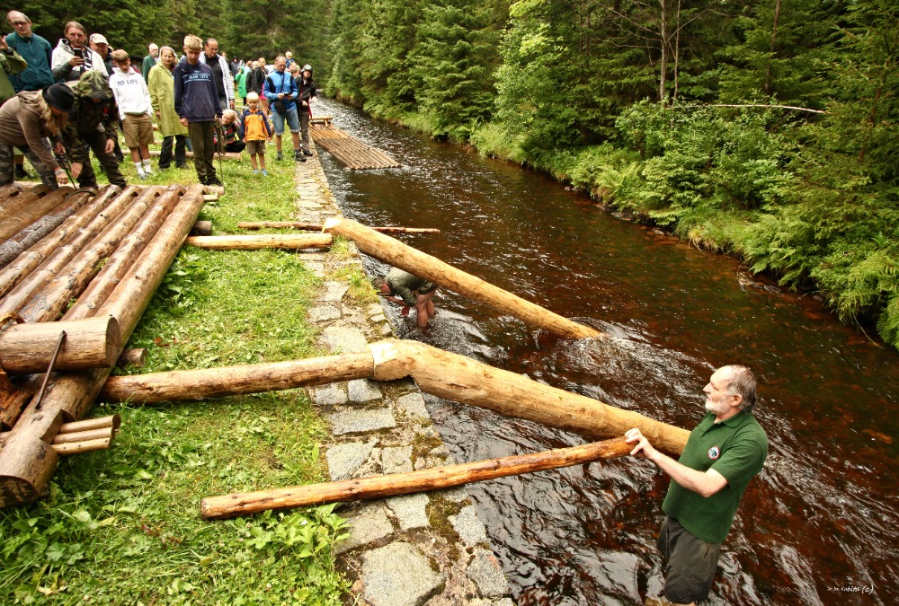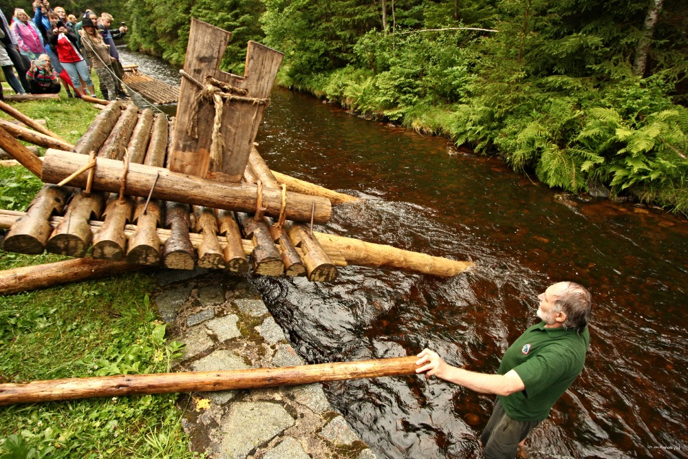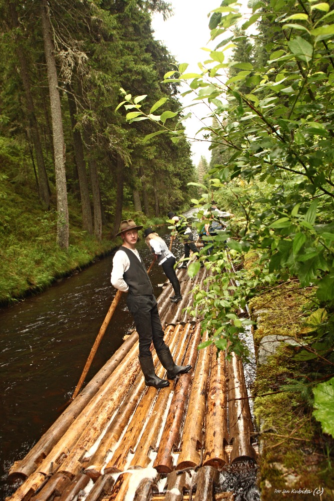Včerejší ukázka stavění vorů a plavby a povídání o životě lidí na Šumavě. Karel Ešner s přáteli i přes nepřízeň počasí přilákal mnoho diváků, kteří se na voru mohli svézt na Vchýnicko-Tetovském kanále.
