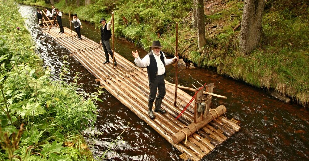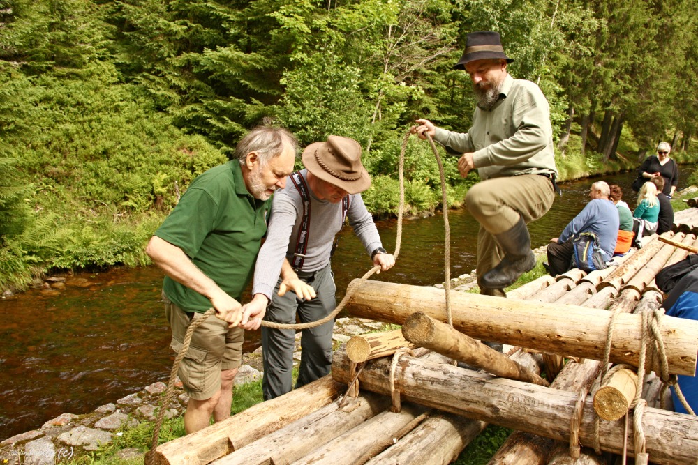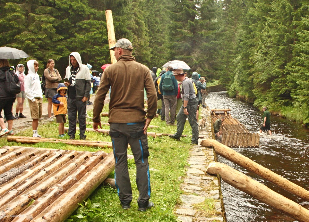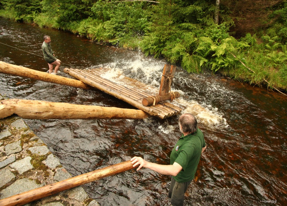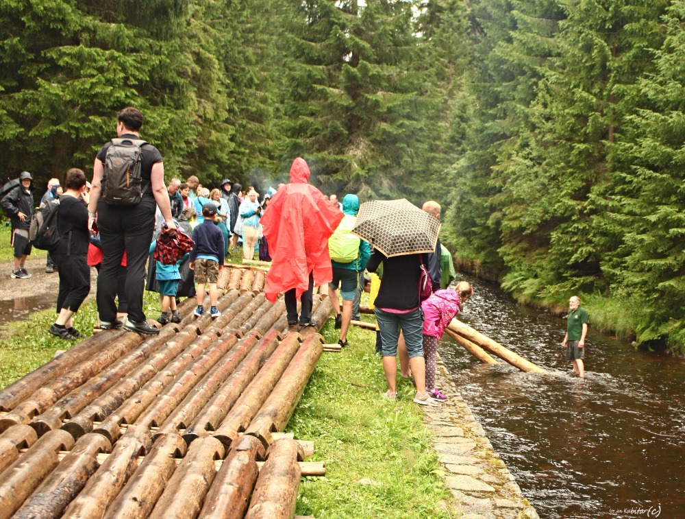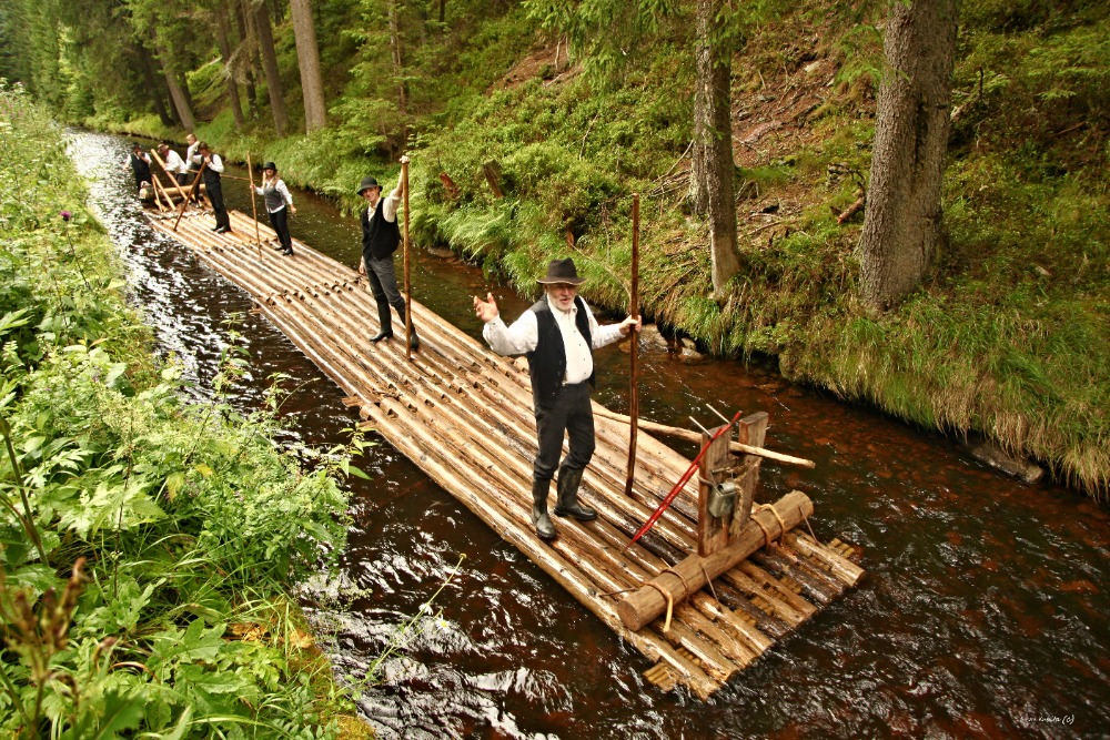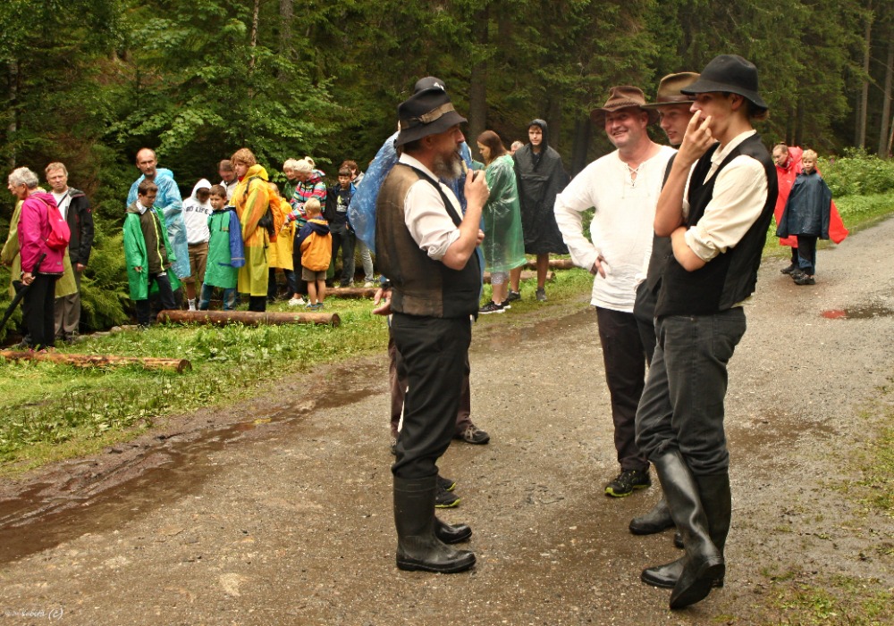 Včerejší ukázka stavění vorů a plavby a povídání o životě lidí na Šumavě. Karel Ešner s přáteli i přes nepřízeň počasí přilákal mnoho diváků, kteří se na voru mohli svézt na Vchýnicko-Tetovském kanále.