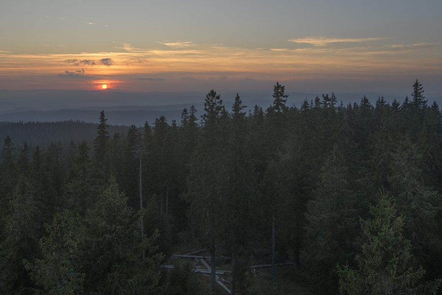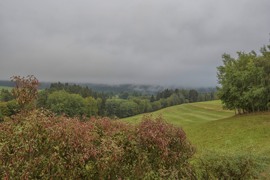 Lákavější nežli dnes se cesta na Boubín původně zdála včerejšího jitra – nabízela totiž možnost dorazit na rozhlednu ještě v létě, uvítat tam poslední sluneční východ zmíněného ročního období a vracet se již na podzim. Onen záměr však zhatila mlha, již si naše hora oproti okolní krajině podržela ve formě své tradiční čepice takřka po většinu dopoledního času. Dnešek pro změnu mohl znamenat uvítání prvního podzimního východu, …