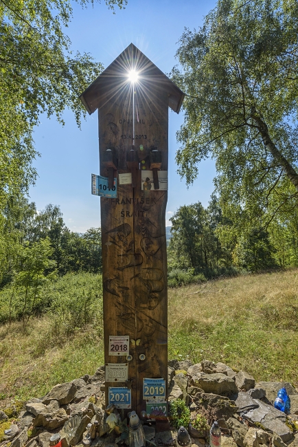 Zajímavý pomník, instalovaný na místě úmrtí zakladatele legendárního cyklomaratonu s názvem Král Šumavy, Františka Šraita, vytvořil známý klatovský výtvarník, cestovatel a spisovatel Václav Fiala.