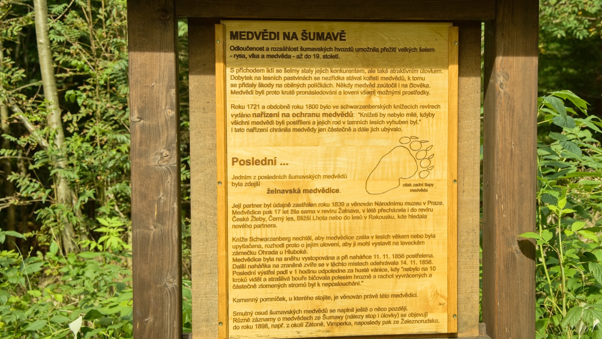 Bývalá Kufnerova pila – na Vltavském potoku, Reifenmühle – mlýn v těsné blízkosti státní hranice u Červeného potoka. Horní Světlé Hory, homo stultus poškodil fotopanel. Soumarské rašeliniště, medvědí stezka, Schwarzenberský kanál a Rosenauerův pomník.