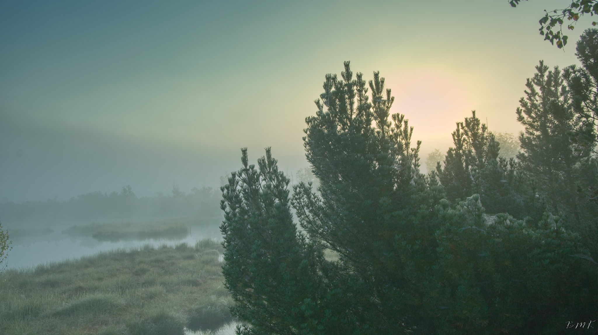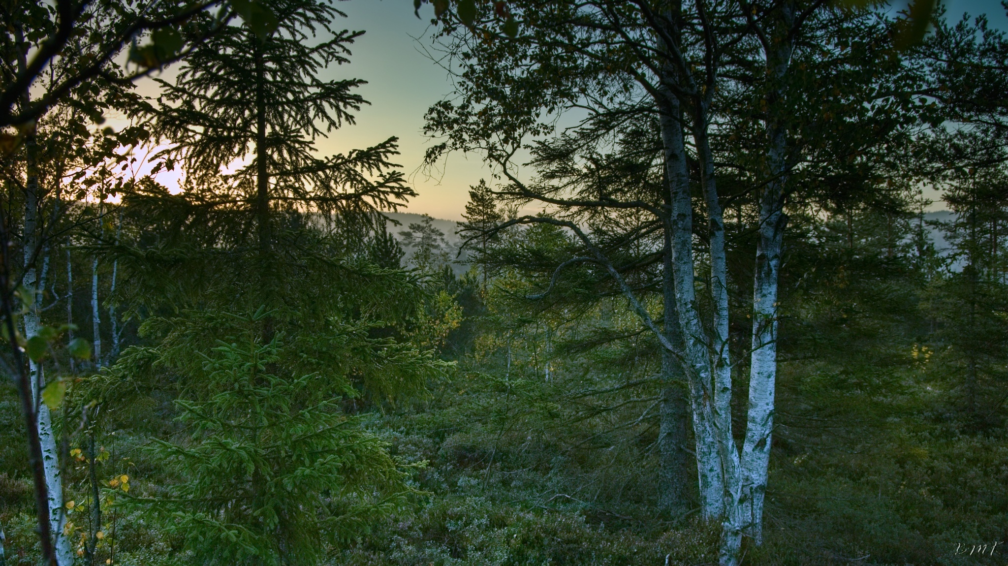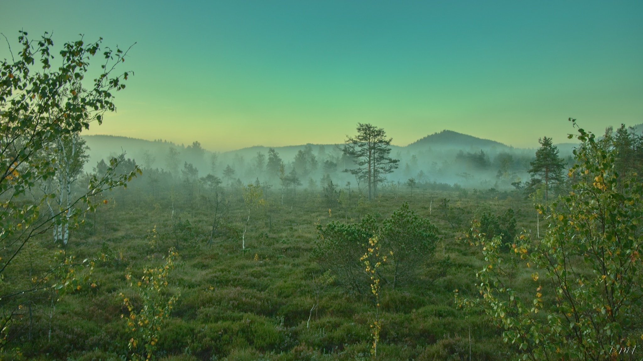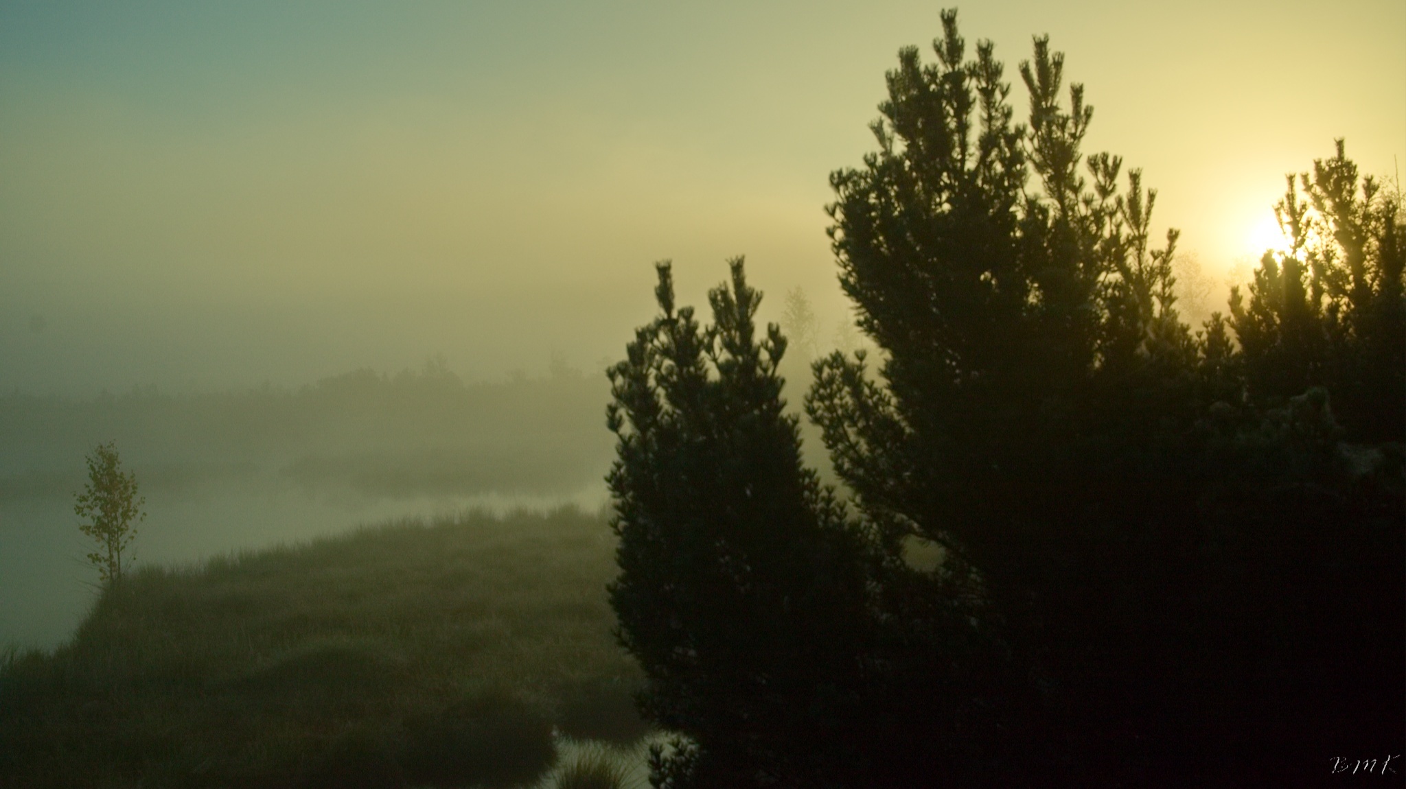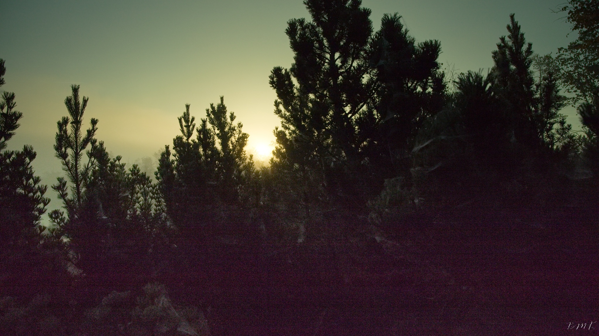 Kunžvard, Horní Světlé Hory, východ slunce na Chalupské slati a Knížecí Pláně.