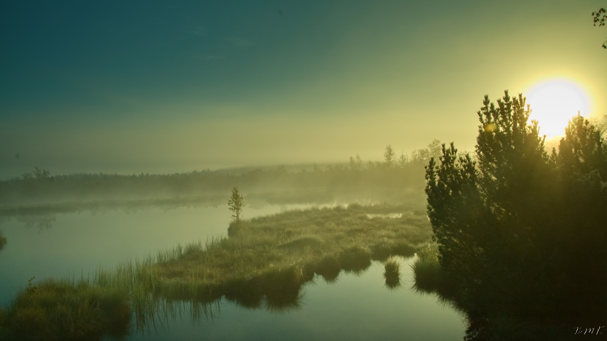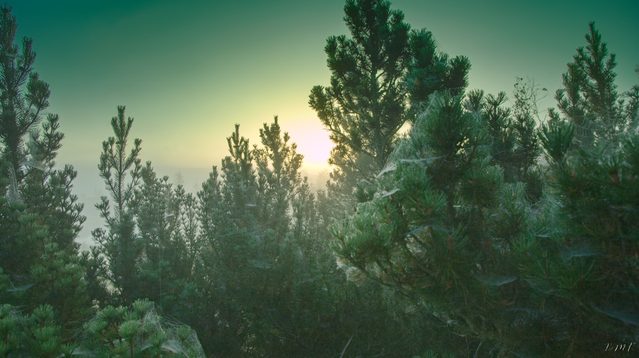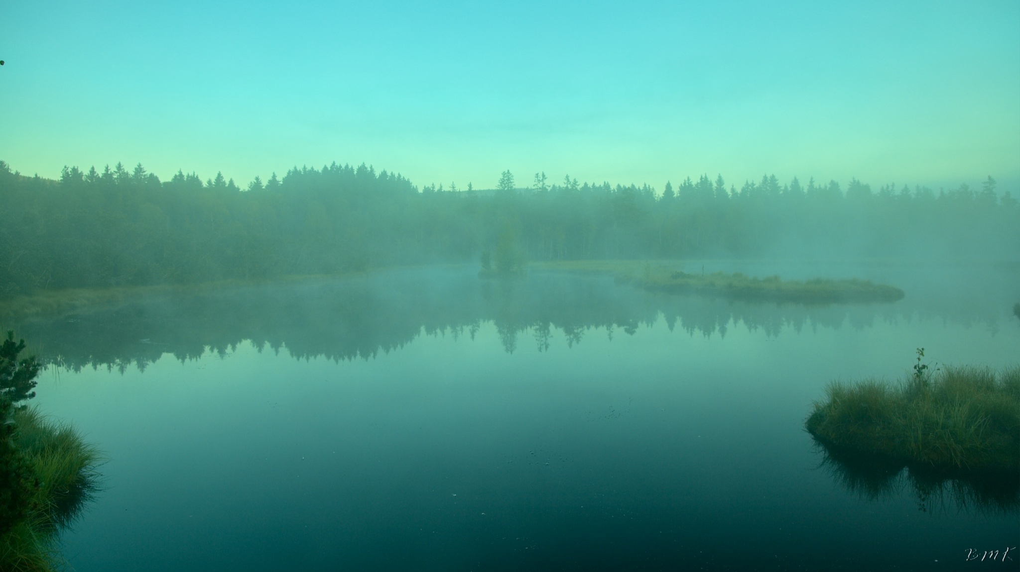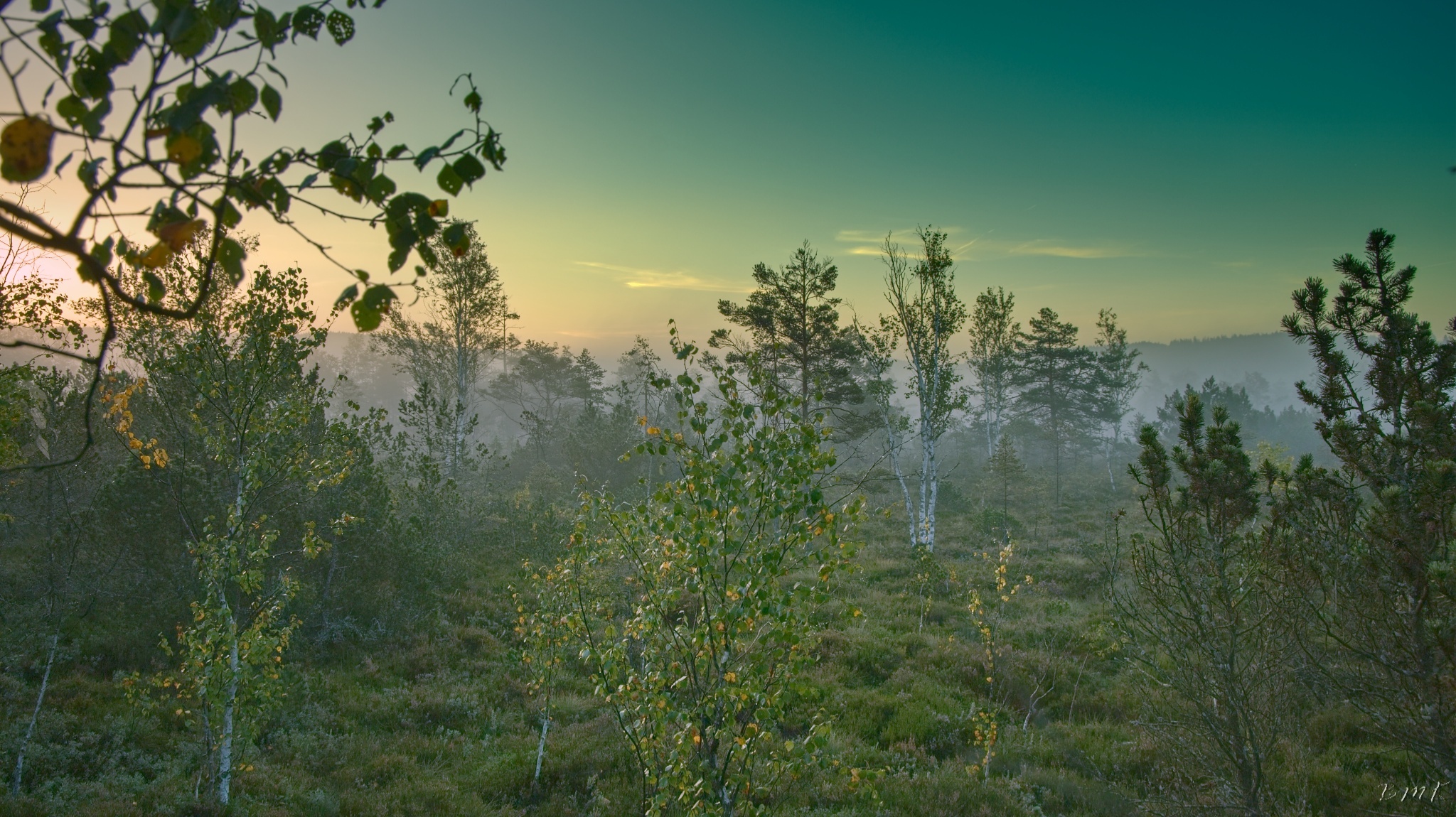 Kunžvard, Horní Světlé Hory, východ slunce na Chalupské slati a Knížecí Pláně.