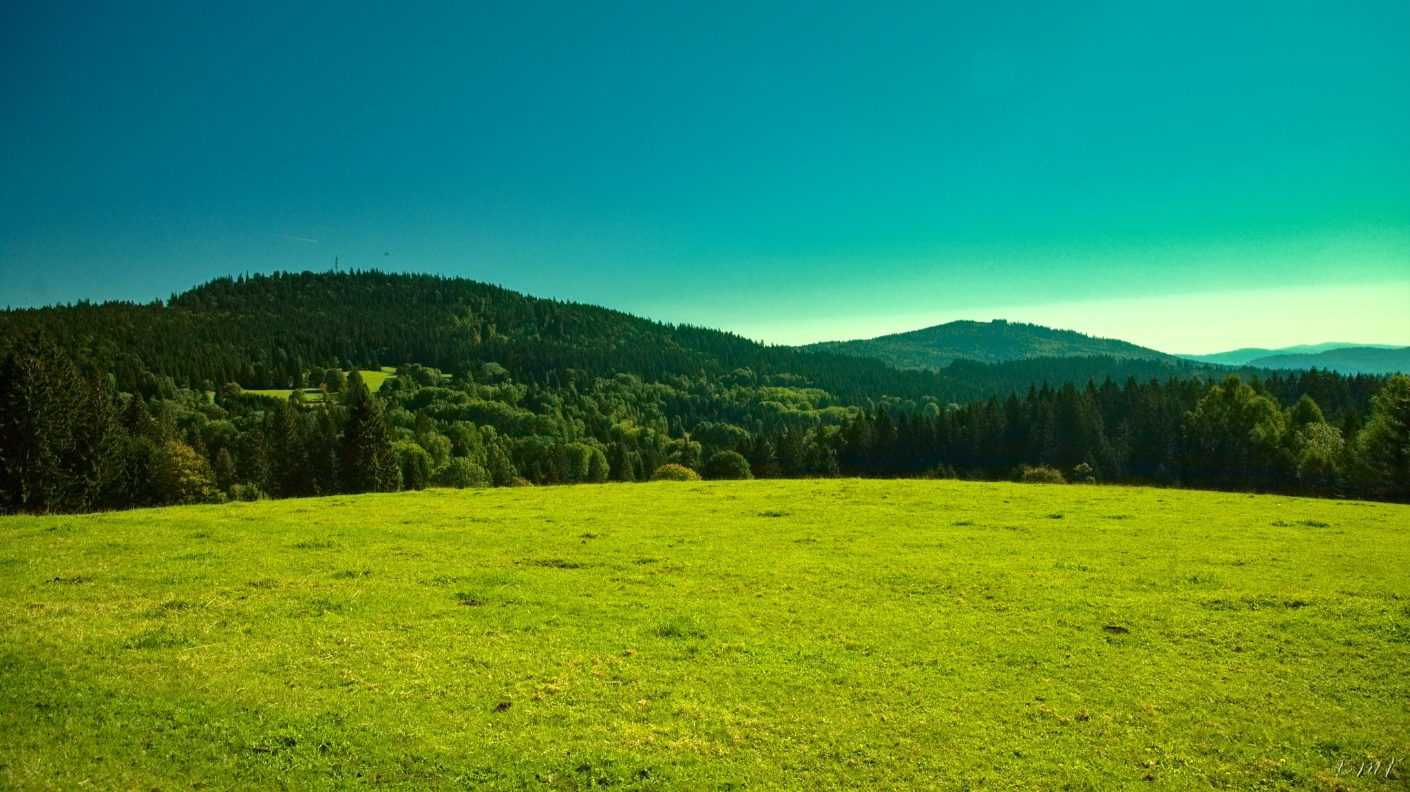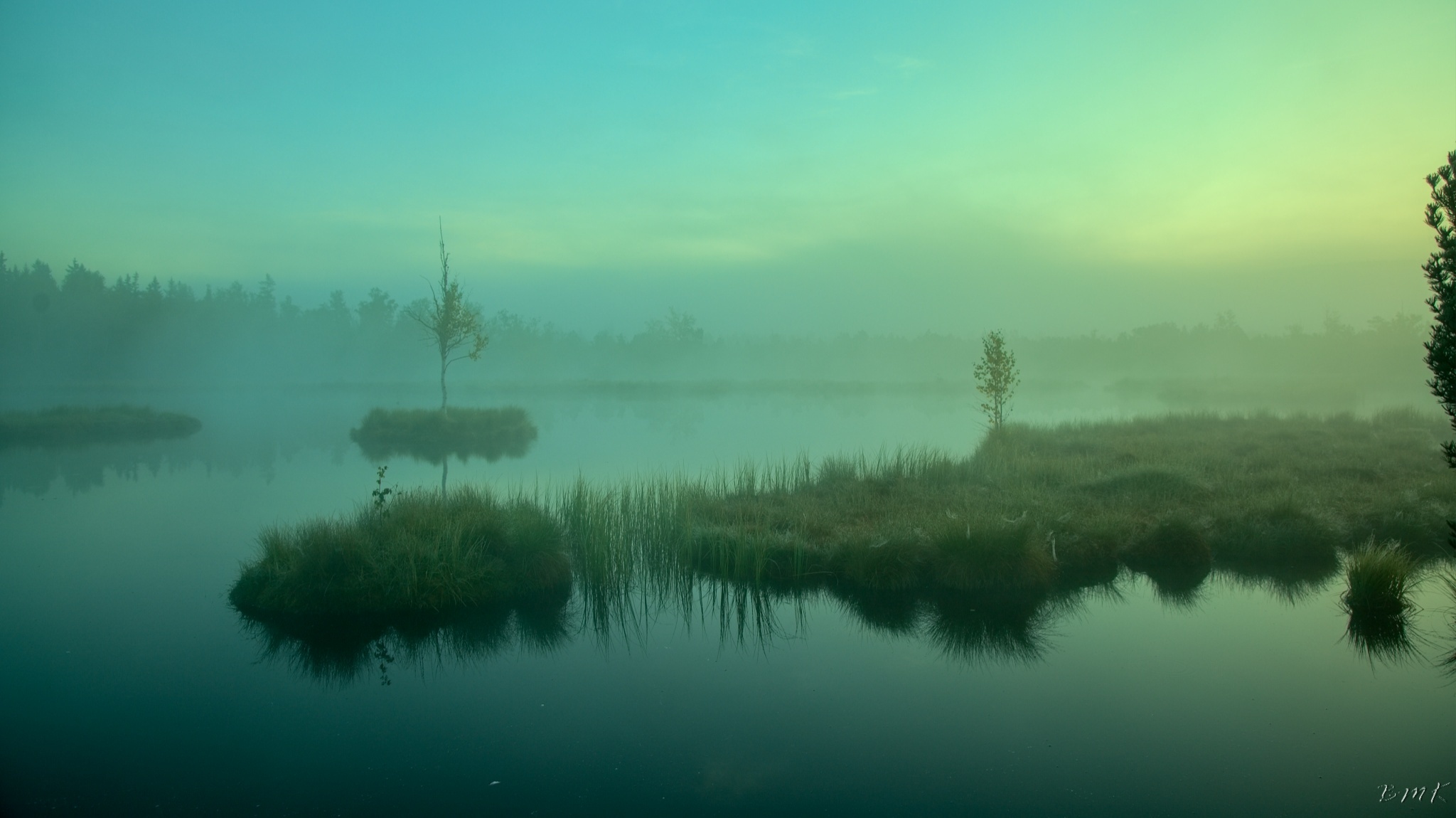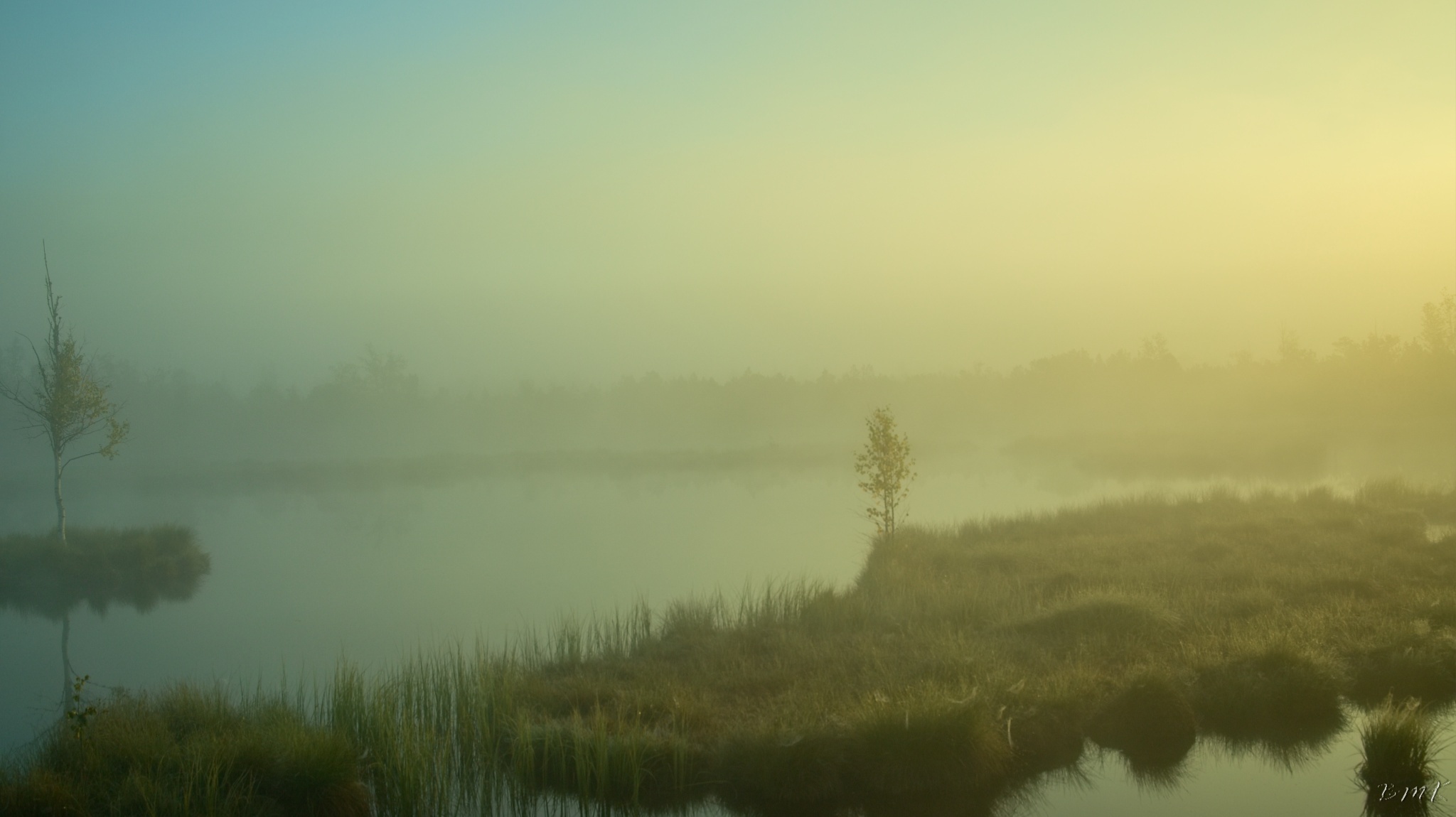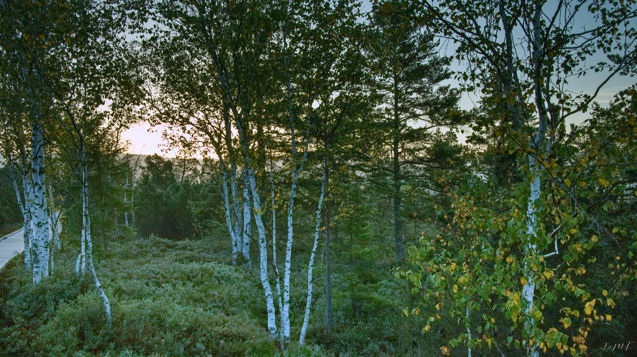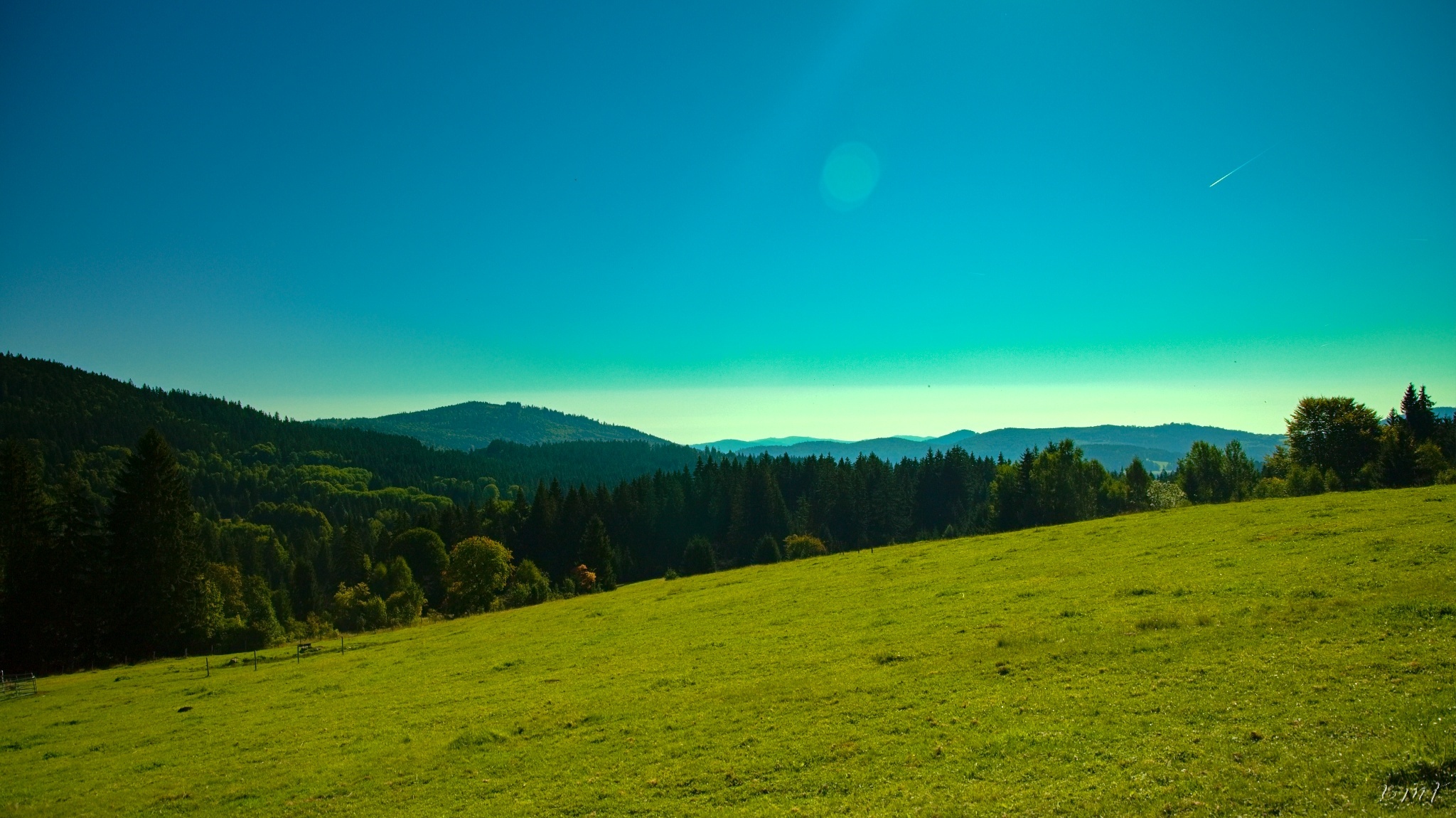 Kunžvard, Horní Světlé Hory, východ slunce na Chalupské slati a Knížecí Pláně.