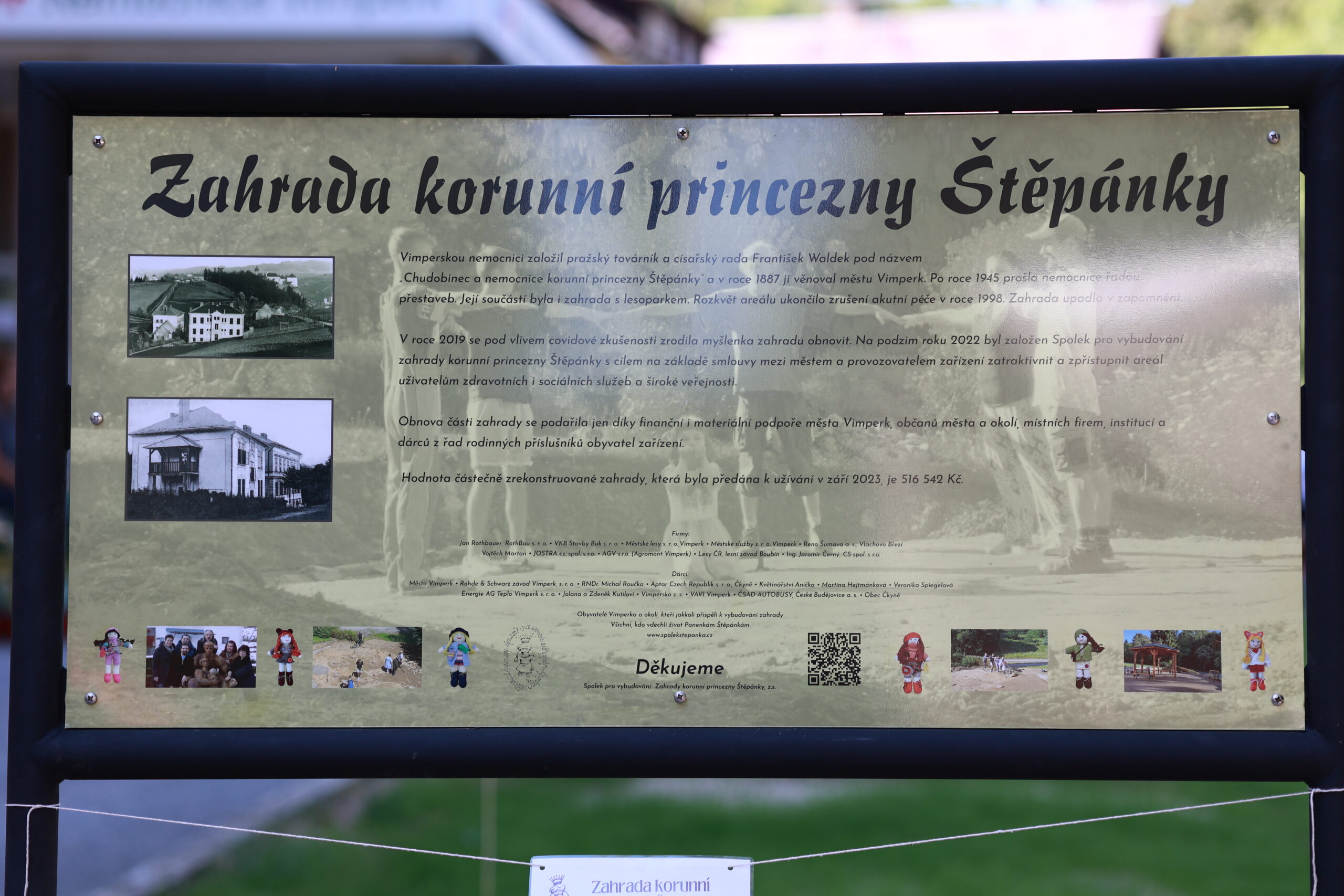 fotografiemi od Leoše Russe vám všem chceme připomenout a přiblížit Zahradní slavnost, která se konala v sobotu 9. 9. v areálu bývalé nemocnice Vimperk. Zahájením této slavnosti bylo předání a otevření nově zrekonstruované části zahrady vimperské veřejnosti. O změnu se postaral Spolek princezny Štěpánky. Na místě je nový altán, nové povrchové úpravy terénu a výsadby rostlin.