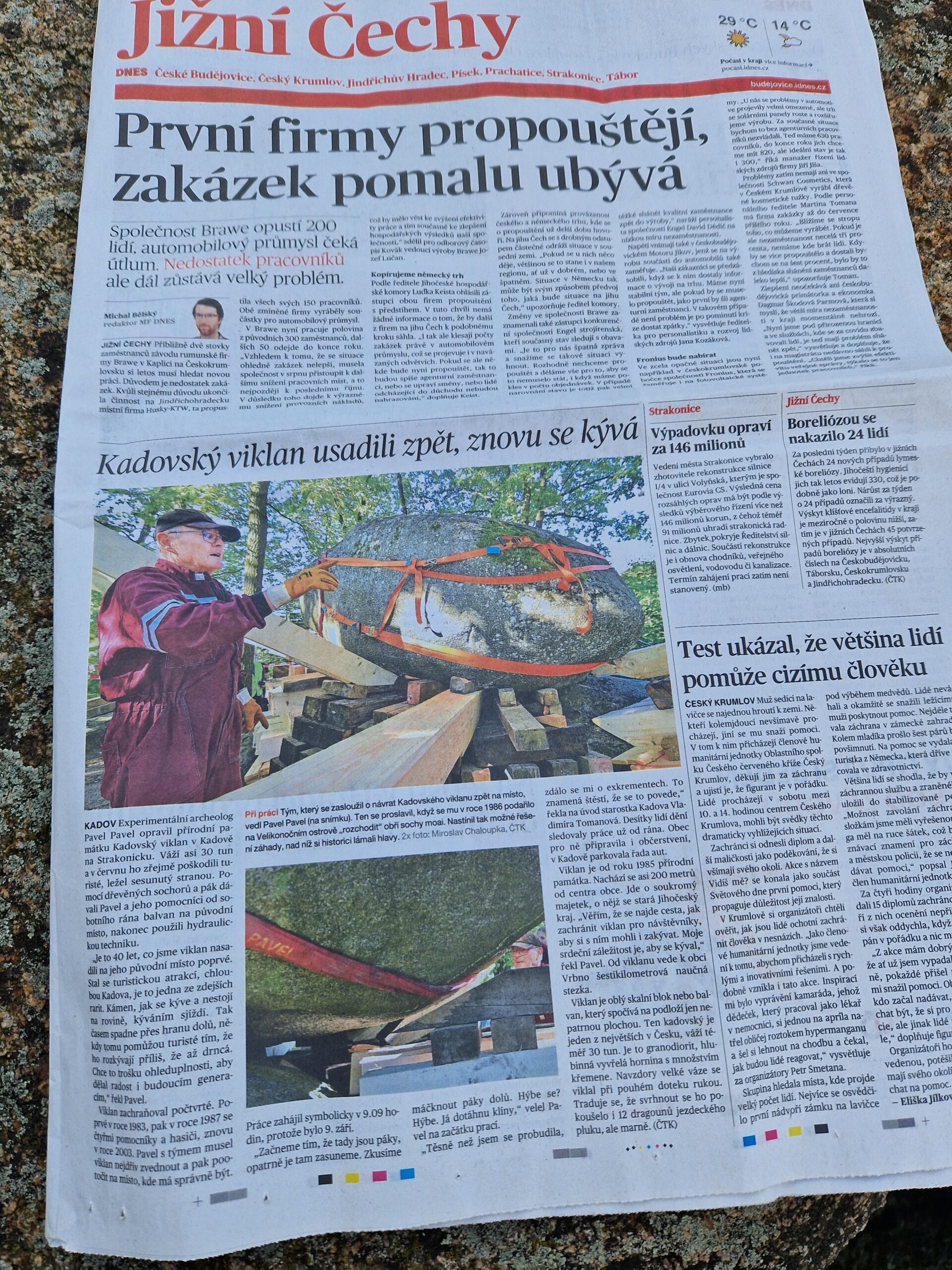 Ke čtyřicátému výročí opravy spadlého Kadovského viklanu nám ho zase shodili. Byla to naše čtvrtá oprava. Poprvé to bylo v roce 1983. Podruhé 1987. Potřetí 2003. Podle kroniky ho poprvé shodili v roce 1893 místní kameníci. Každá oprava je riskantní a technicky náročná. Kadovský viklan je však nejhezčí z českých viklanů a chloubou Blatenska. To je důvod proč jsem slíbil paní starostce Kadova, že ho zase opravíme. Ovšem uvítal bych, aby se návštěvníci k viklanu chovali citlivěji.