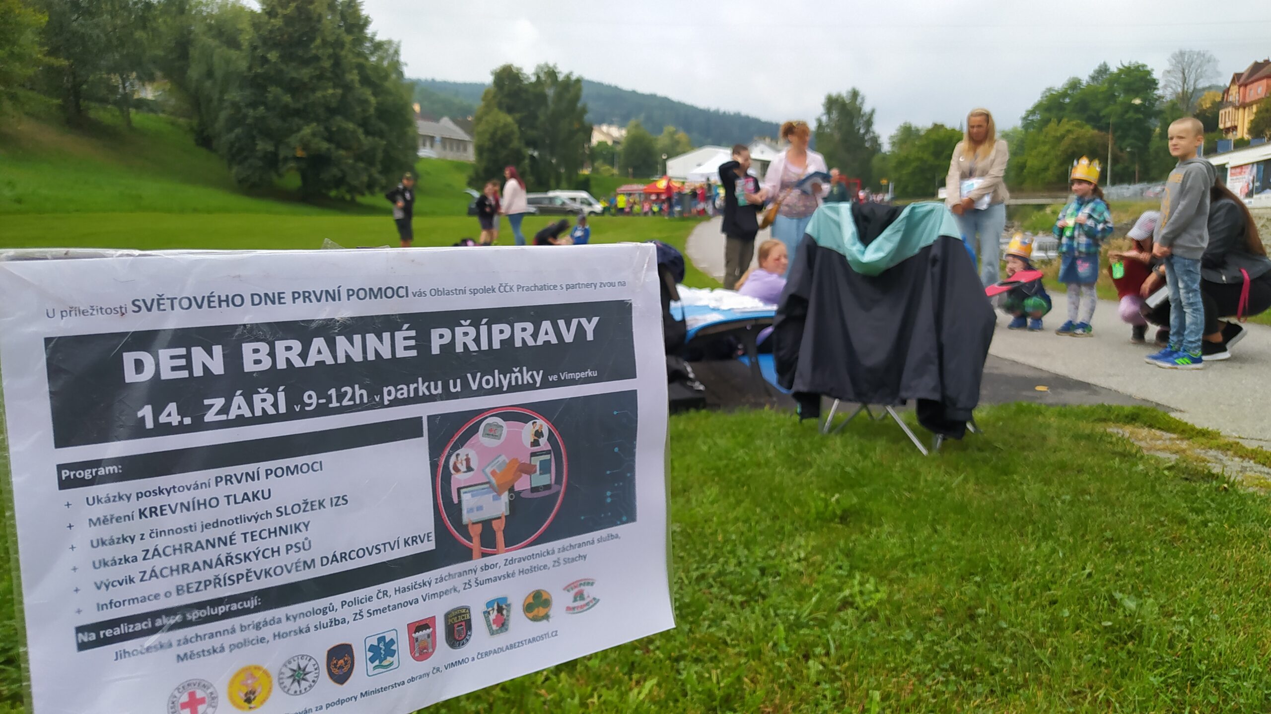 U příležitosti Světového dne první pomoci uspořádal Český červený kříž Prachatice za podpory Ministerstva obrany, Města Vimperk a Zdravého města Prachatice akce, které příchozím návštěvníkům předvedly mnoho zajímavostí z oblasti branně bezpečnostní problematiky.