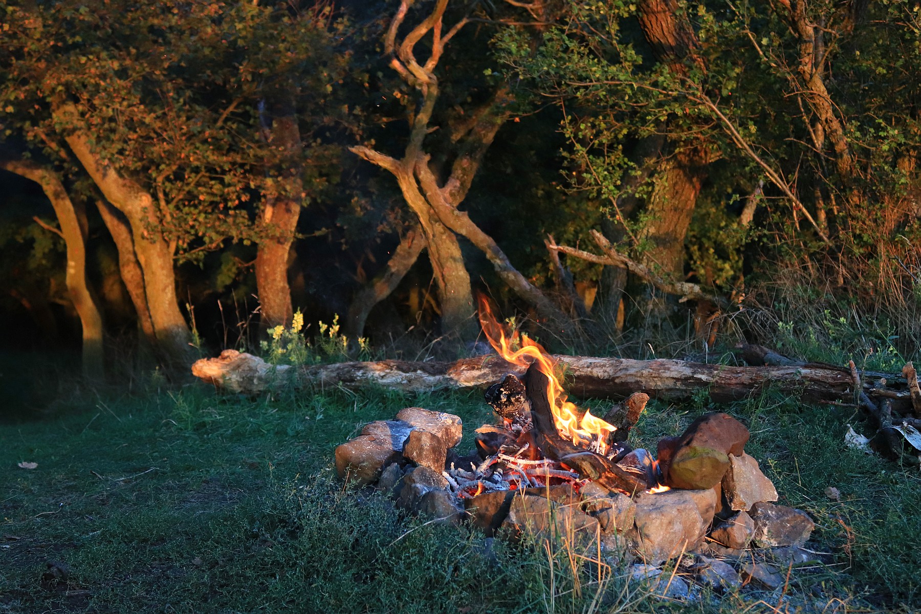 Přikládáme do ohně silné klacky i trnité suché větvičky hlohu. Upíjíme víno. Z údolí potoka Žejdlík se ozývá puštík, naše zářijová sova, kterou jsme už slyšeli před týdnem v Českém lese. Těším se na spánek. Mám slabý spacák, k ránu cítím chlad, ale to mi nevadí. Dávám přednost lehkosti batohu před pohodlím nocování v teple. Cítím v hrudi hluboký pokoj a podvědomě oddaluju svítání.