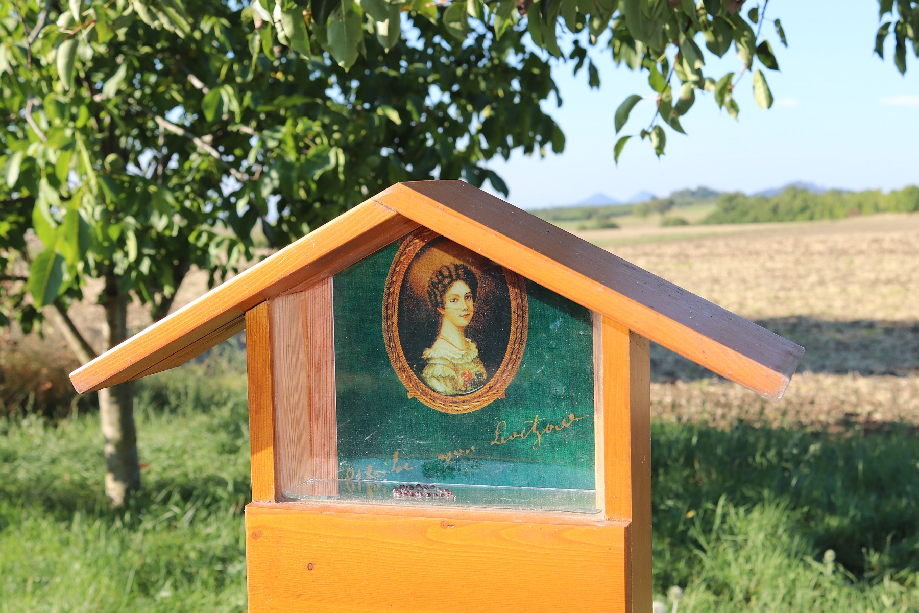 Zastavujeme na spodním okraji obce Staré. Vedle soukromé hvězdárny někdo umístil vzpomínku na Ulriku von Levetzow, reprodukci portrétu této poslední Goethovy lásky. Pod obrázkem leží náramek z rudých korálků, mohl by to být i růženec z krvavých krůpějí. Ulrika von Levetzow byla majitelkou třebívlického panství. Goethe se do ní zamiloval v Mariánských lázních už jako starý muž. Nazval ji andělem v třpytu par. Požádal o její ruku, ona jej ale odmítla. Připadala by si hloupě, že Goethův syn a snacha jsou o mnoho starší, než jejich macecha. Kdyby však děti neměl, vzala by si ho, prý aby se o něj postarala. Ach, postarala by se o starého muže, jak smutná, konečná hra lásky.