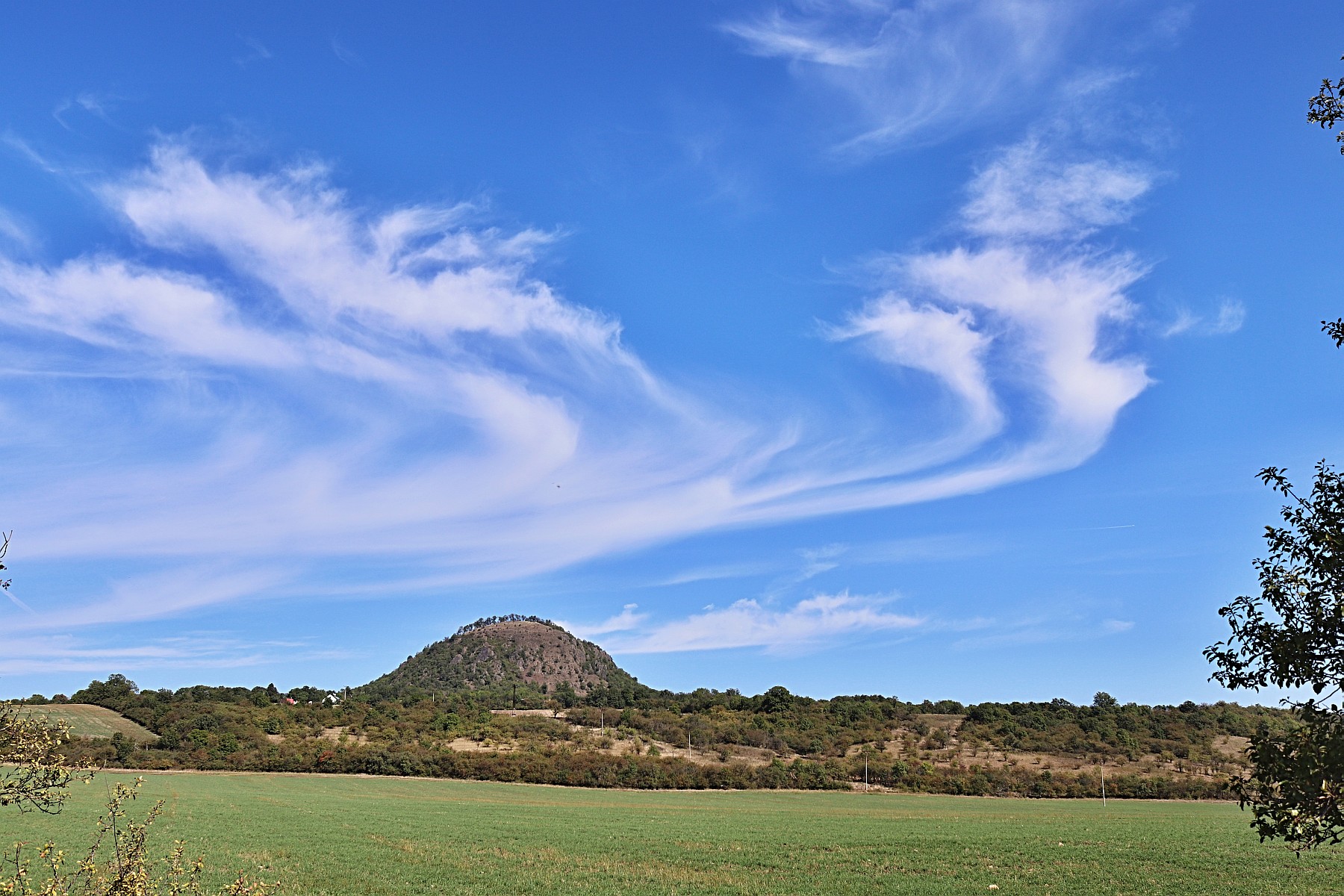A ještě jeden vrcholek jsme si předsevzali vylézt: Milou. Klubíčko stoupá poctivě po modré značce, já se ženu nahoru skalnatým jižním srázem. Vida, pod čedičovými skalami připomínajícími varhany proběhl divočák. Jak je svižný se svýma krátkýma nožkama. Schoval se v křoviscích a trní jednoho ze žlebů. Od nohou mi v rozpáleném svahu odskakují sarančata. Některá z nich jsou větší a dokonce se dávají do letu. Jsou to sarančata modrokřídlá. I na vrcholku je jich spousta. Tu přilétá sršen. Pátrá mezi nimi nizounko nad zemí jak špionážní letoun. Je to jen hra, nebo jde sarančatům o život?