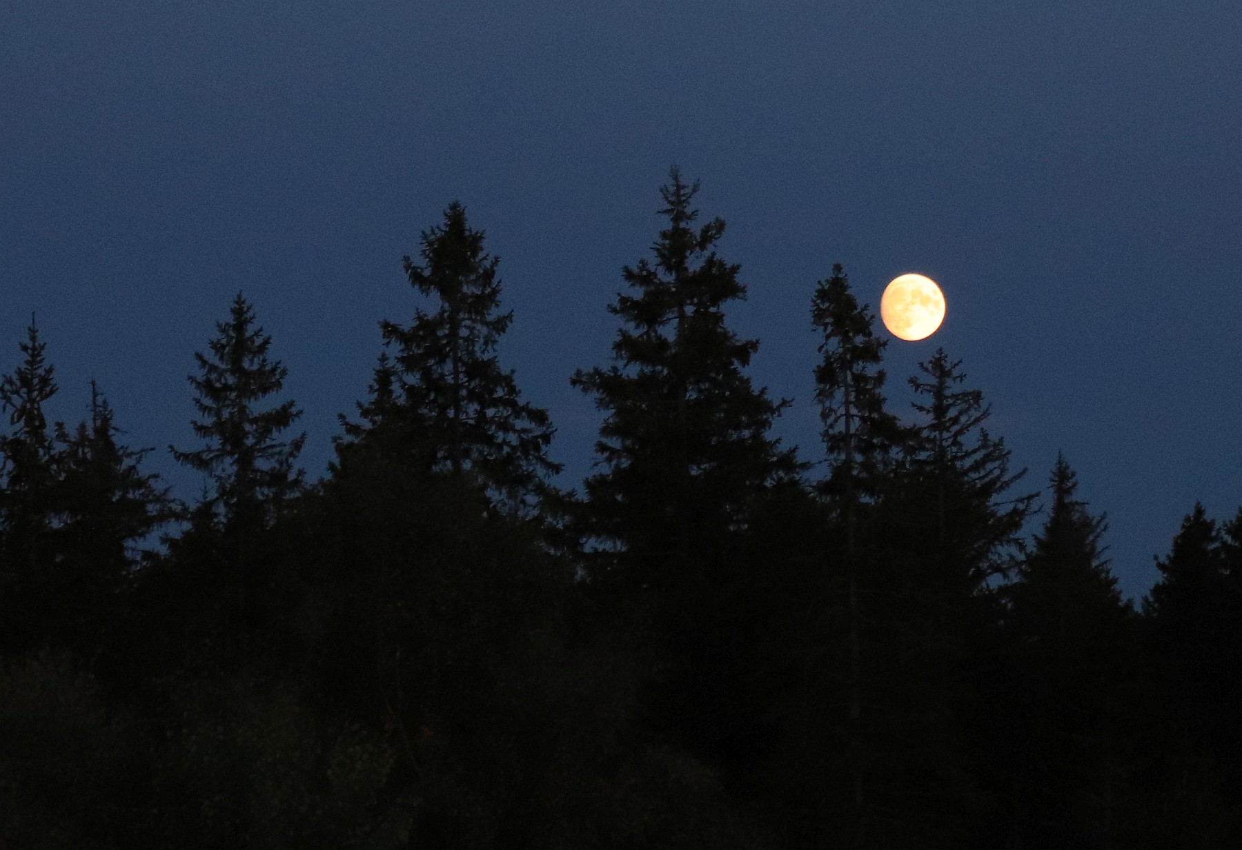 A pak už kousek před stanicí zasvítil do lesní tmy mezi korunami smrků měsíc. Připomínal reflektor. Vzpomněl jsem si na svůj první šumavský vandr v roce 1977 s partou katolické mládeže a několika bohoslovci. Bylo mi šestnáct. Vyprovokovaná čerstvě zveřejněnou Chartou 77 chovala se tenkrát veřejná bezpečnost nevypočitatelně a kontroly se nás snažily zaskočit i víckrát denně. Asi také hrála roli blízkost západní hranice. Jeli jsme, tuším, z Prahy do Rejštejna a pak jsme stoupali podél Vydry vzhůru k Antýglu. Když se setmělo, sešli jsme na břeh. Ulehli jsme, jak se kdo vtěsnal mezi balvany. Tu jeden z nás poděšeně vykřikl: „Už nás mají!“ Ach, byl to jen měsíc, který tenkrát také zrovna stoupal do korun smrků.