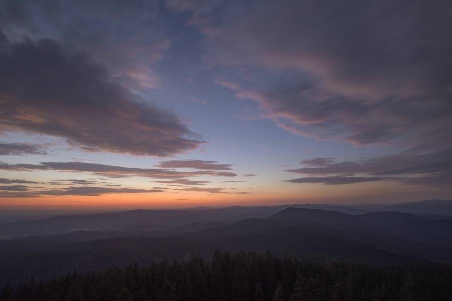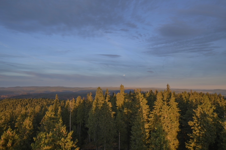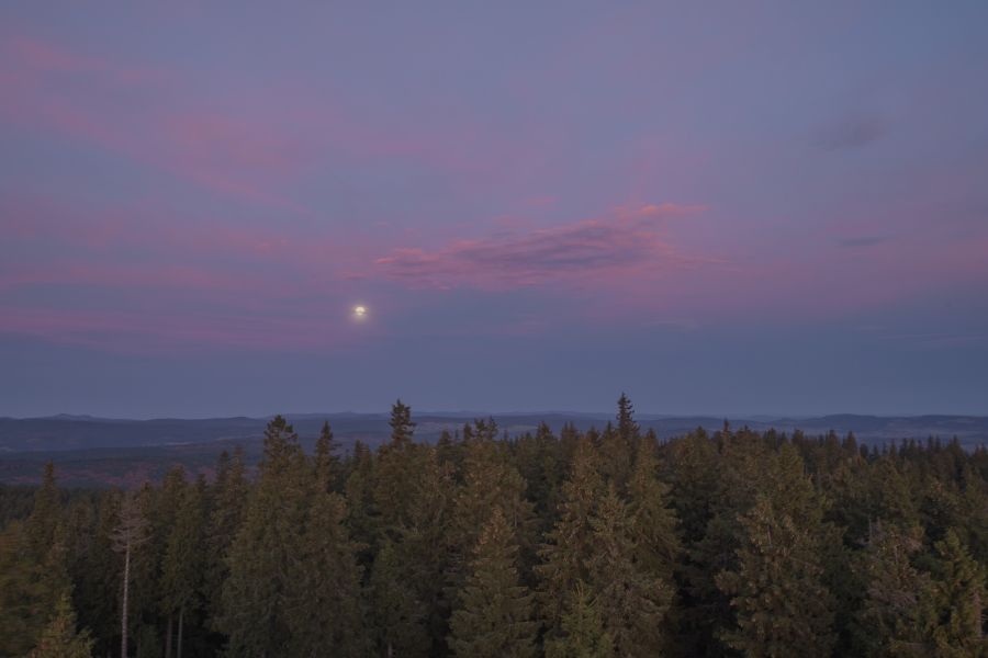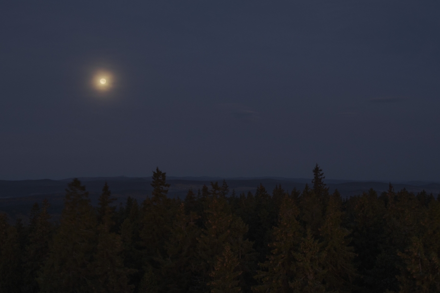 V jednu chvíli jako by se s úplňkem chtěl pozdravit též stín boubínské rozhledny.