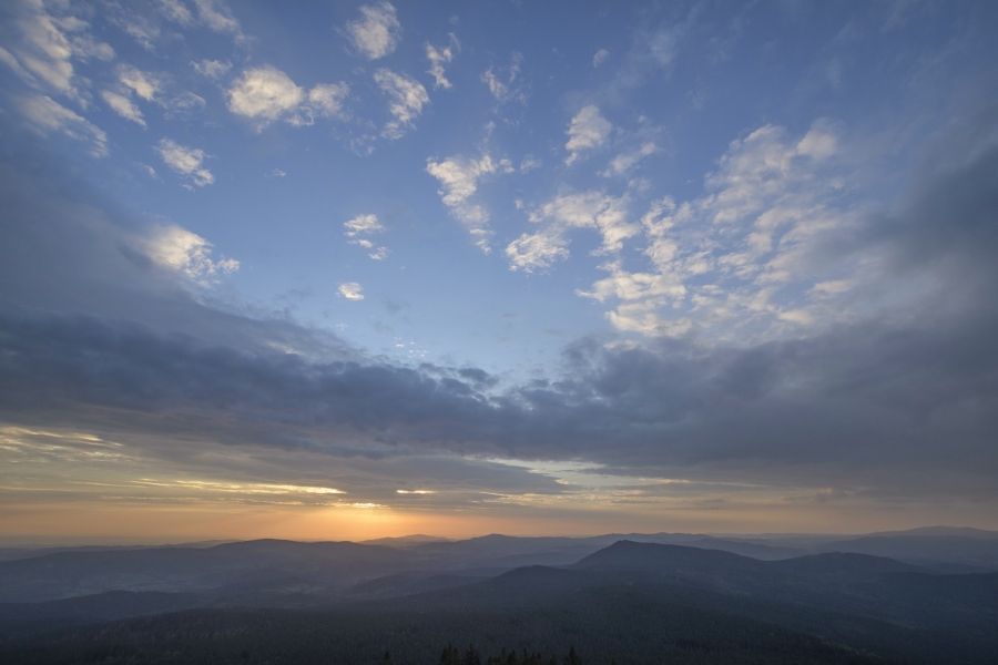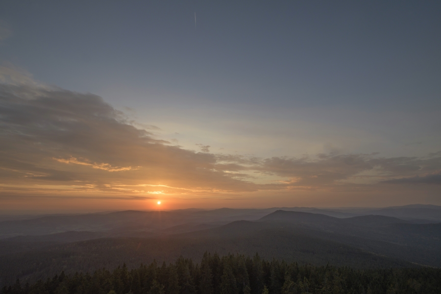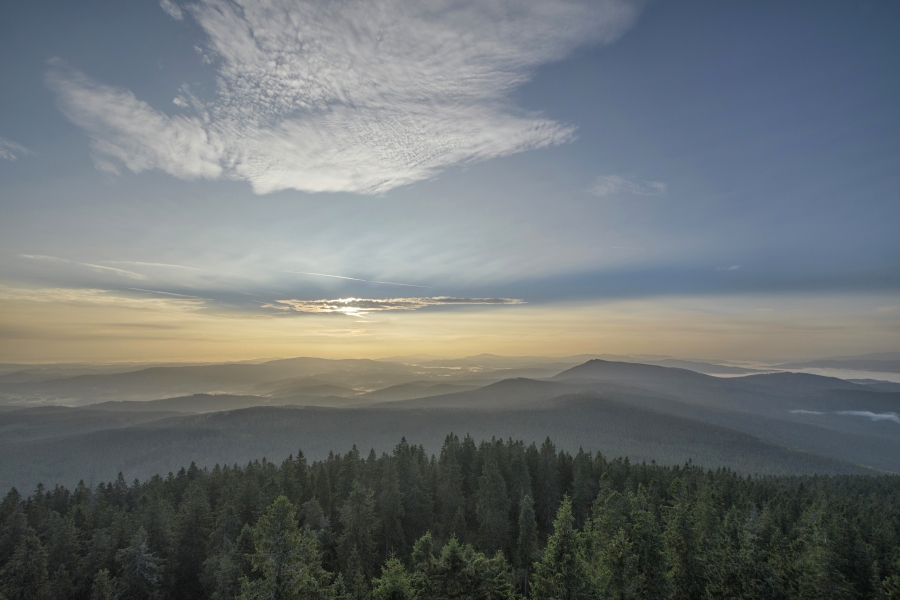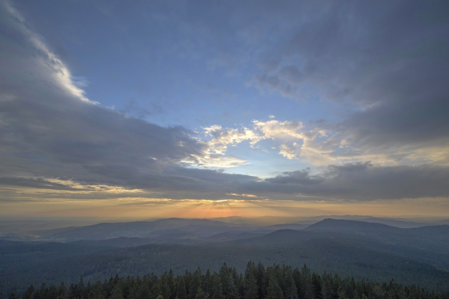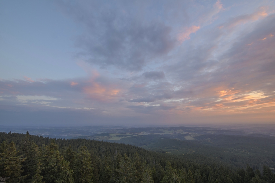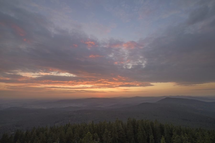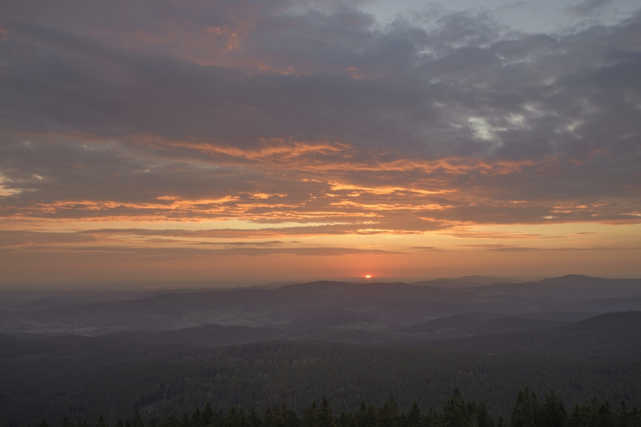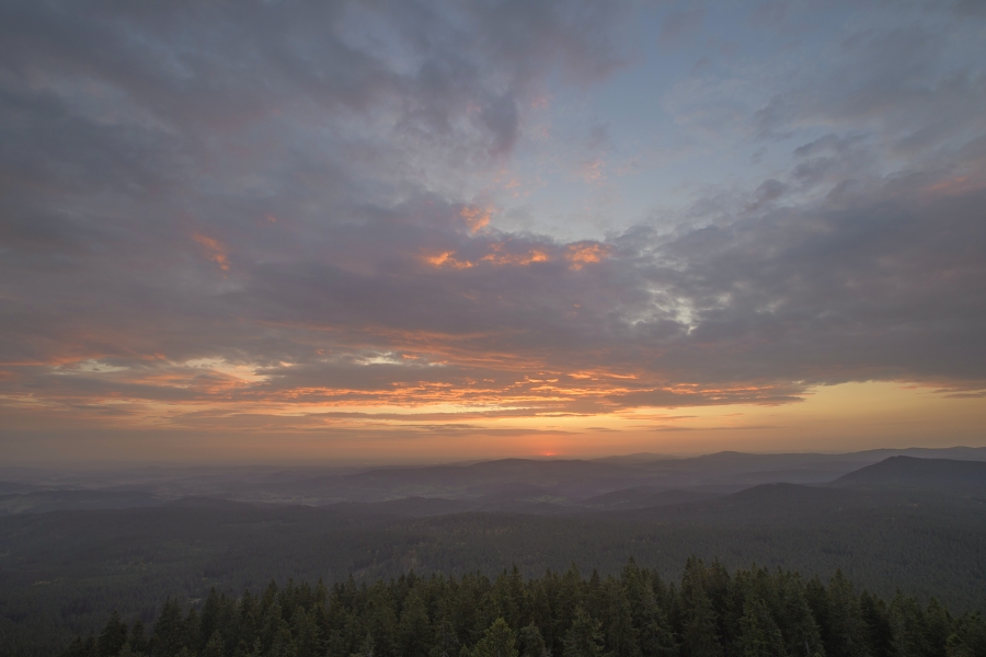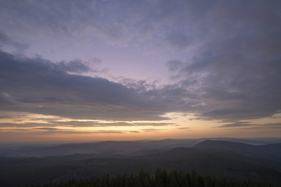Časně ranní Boubín již naznačoval, že od západu se blíží srážková vlna, …