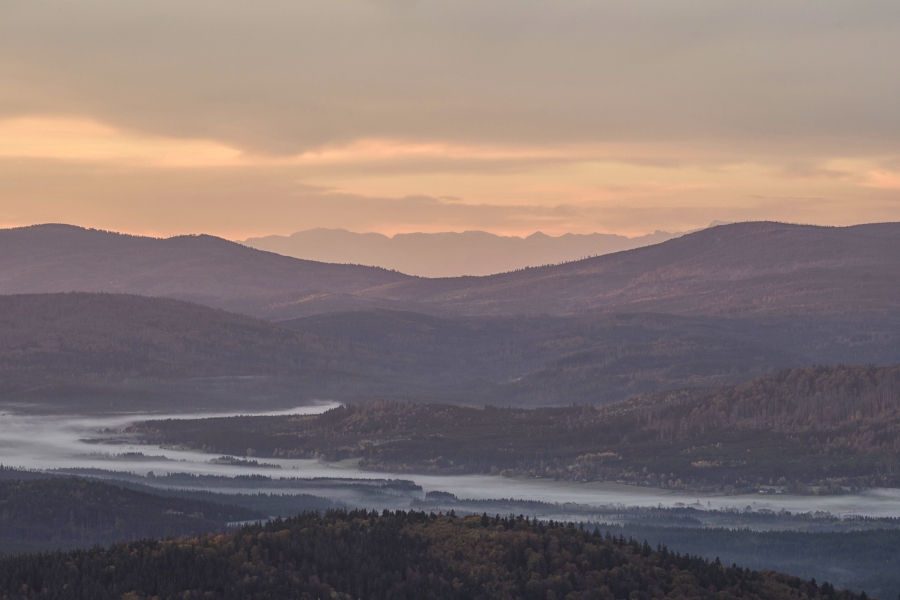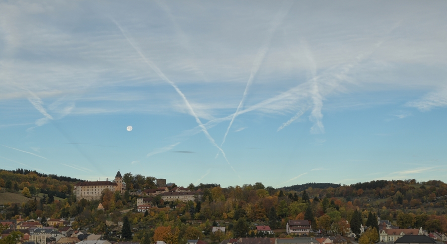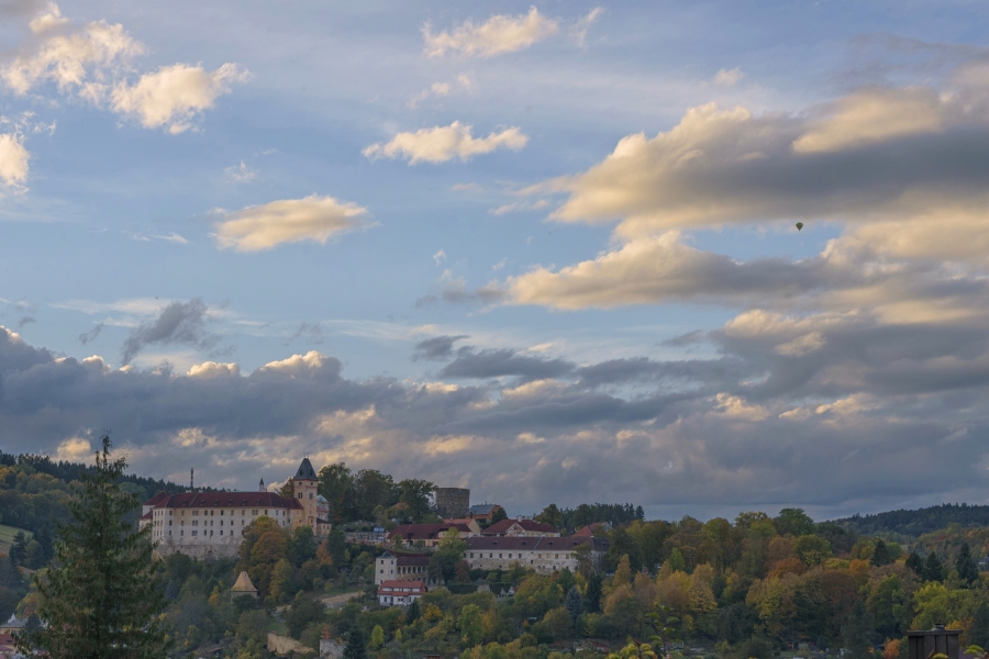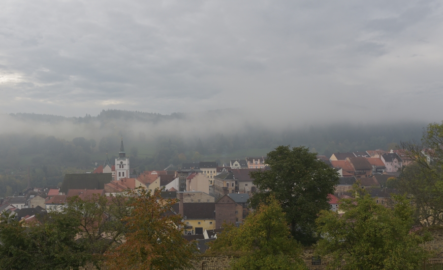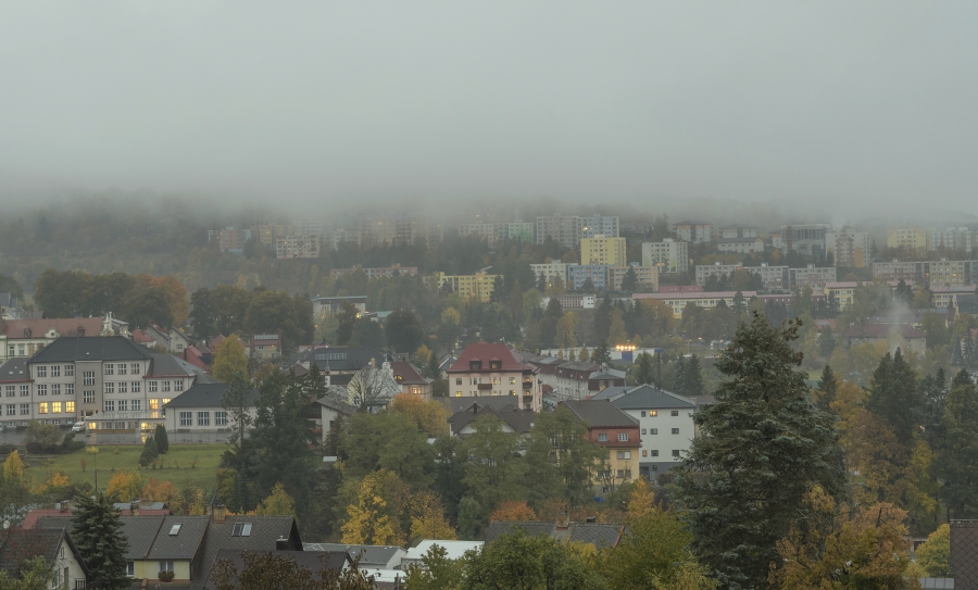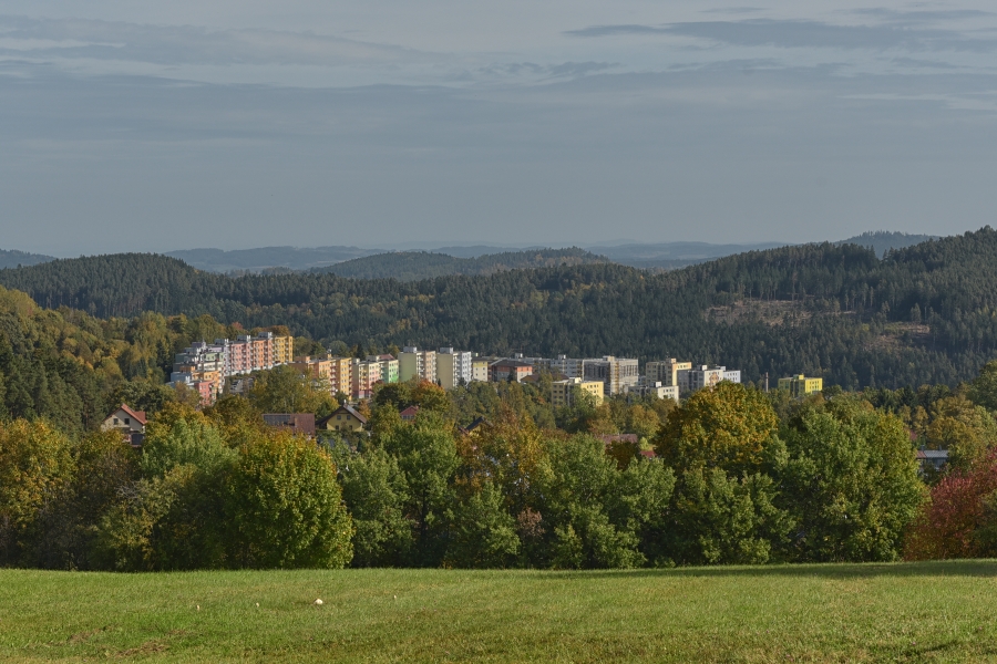 Nezaznívá tu poprvé, že panelová zástavba zkrátka k Šumavě nesedí. Jako by však příroda věděla, že s tím nic nenaděláme, snaží se ze všech sil ten v jádru nepříjemný pocit svým podzimním působením mírnit.