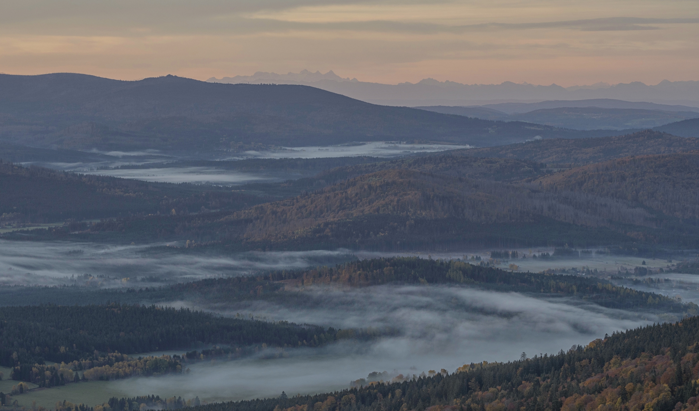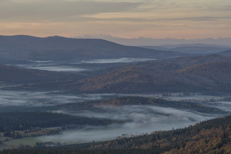 Po mrazivém začátku týdne se nám opět počasí zhouplo do přívětivějších rovin a včerejšku, tedy předposlední říjnové sobotě, navrátilo iluzi teplého slunečna. Za takových okolností postačil drobný noční deštík k tomu, aby nedělní časně ranní Boubín procital do husté mlhy.