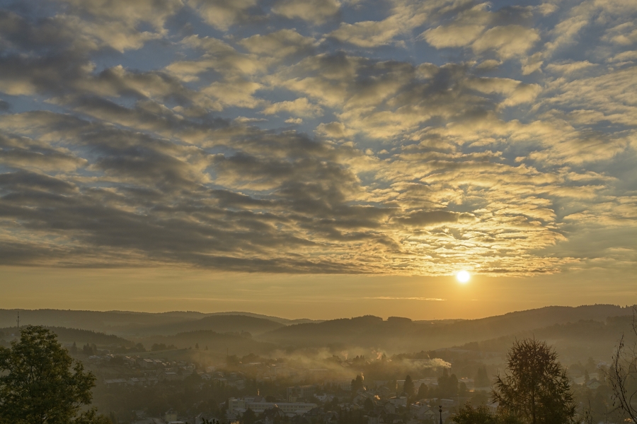 Jen co se sluneční kotouč probije nad oblačnou bariéru, …