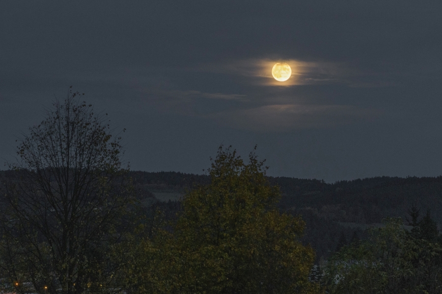 … což mohlo vzbouzet obavy z hlediska nadcházejícího „Loveckého“ úplňku (v 22:23), navíc provázeného částečným zatměním. Pokud by se do večera, resp. noci nebeská klenba nepročistila, viditelnost vzácného úkazu by zůstala pouhým nevyslyšeným přáním.