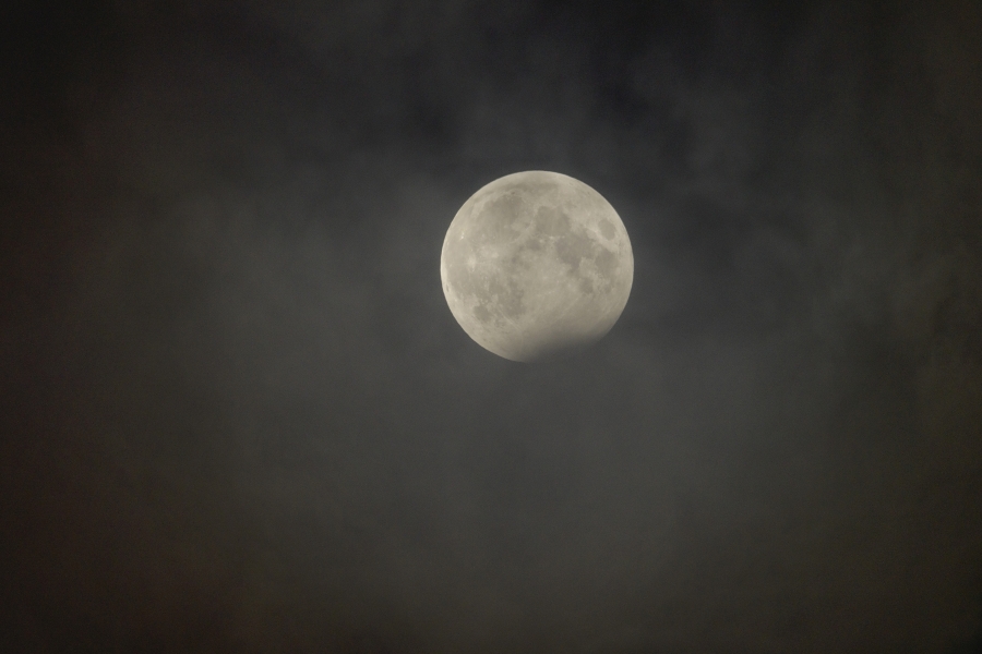 Noc však do všeho navrátila původní dramatičnost – nejen že našeho věrného vesmírného průvodce buď většinově ukrývala za další hojné vlny čerstvé oblačnosti, nebo jej aspoň výrazně zneostřovala, ale přinesla dokonce mírné deštivo, jež se zdálo být možnosti pozorovat zatmění hřebíkem do rakve.