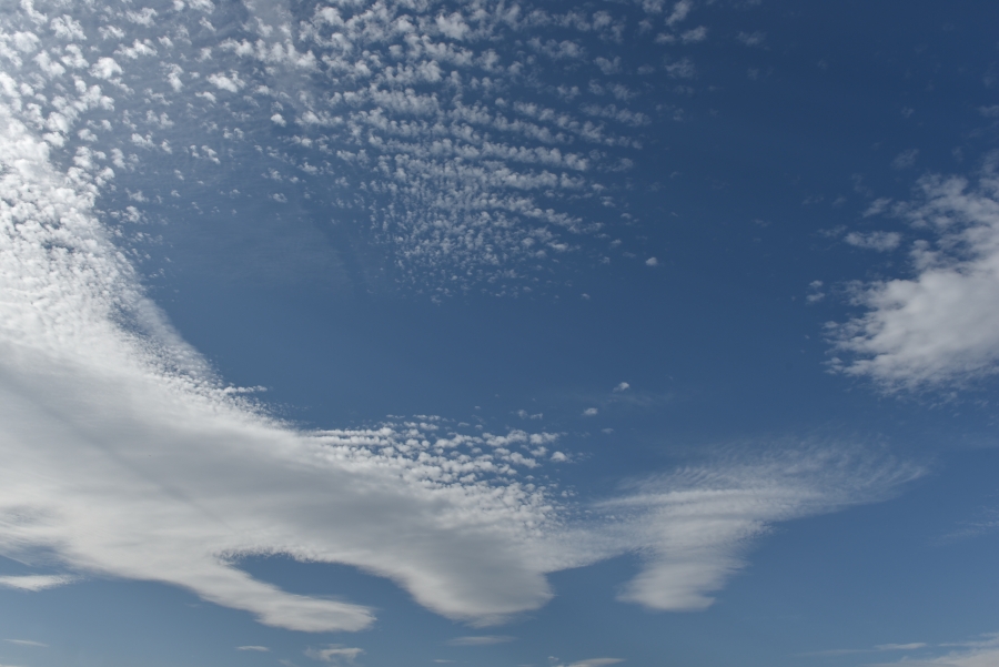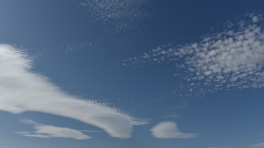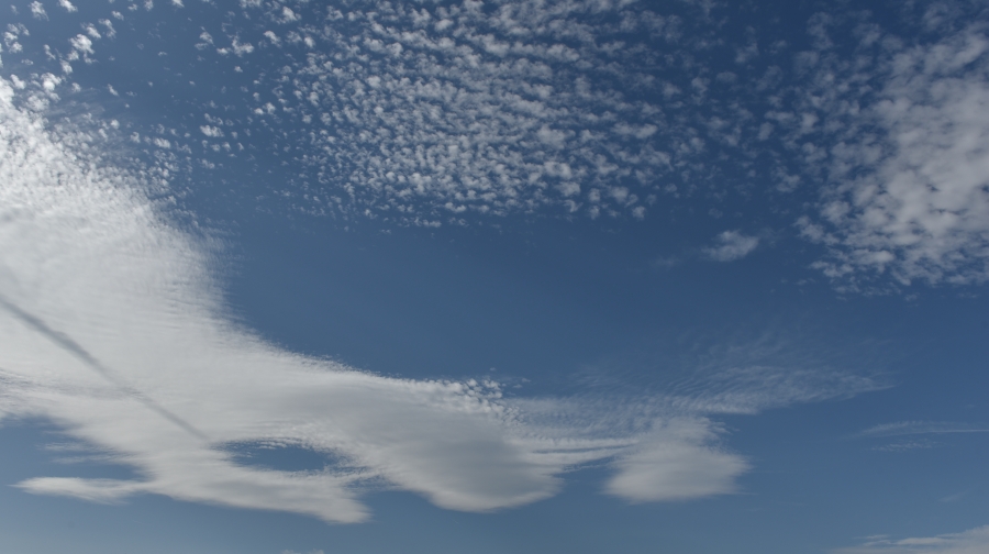 Na ojedinělých osamělých cirrech působí i náznaky parhelií patrně nejzajímavěji.