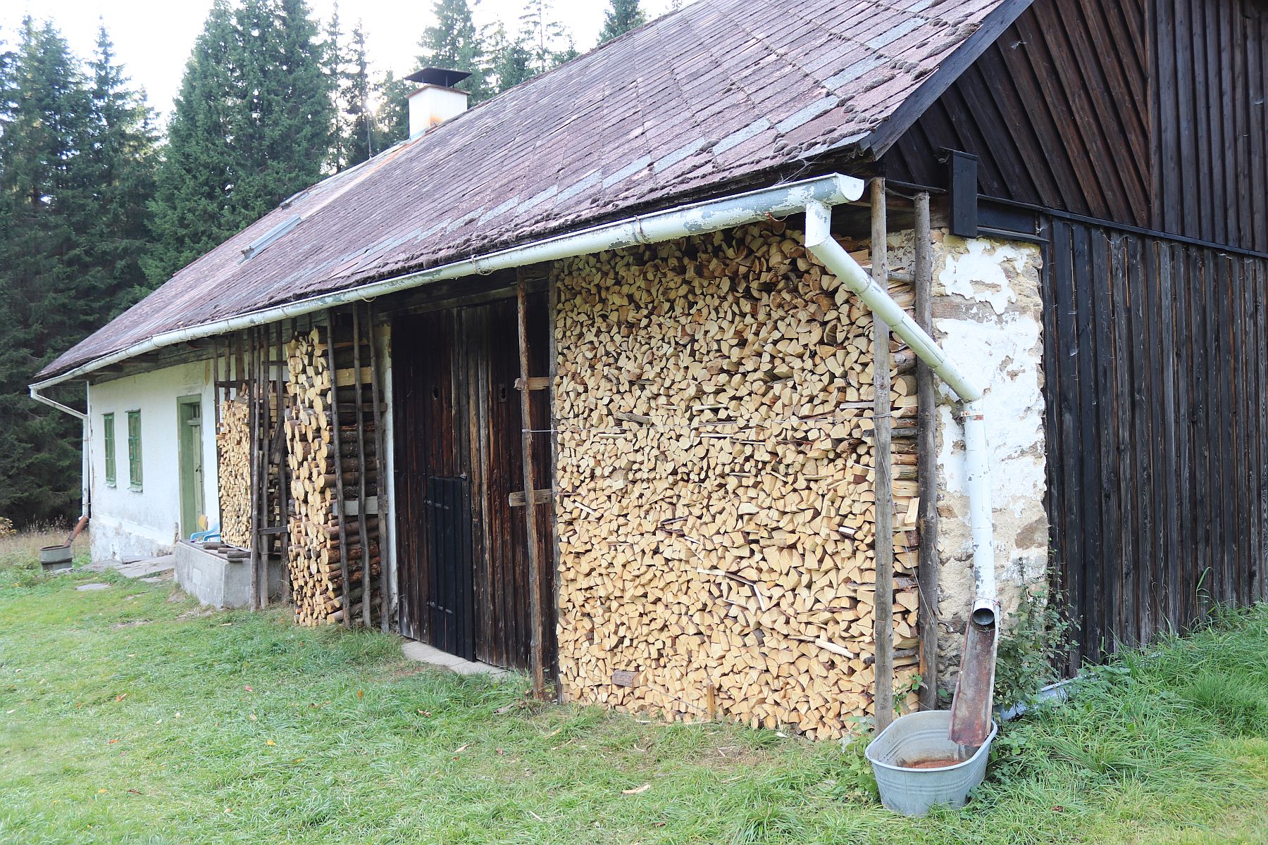 Pak štípu dříví a ukládám je s Honzou ke stěně dřevníku. Zbyla na mě největší sekera Fiskars, těžký ale jinak skvělý nástroj, s něčím takovým jsem ještě dříví neštípal, ale už mi nezbývá energie ani k tak jednoduché práci. Přitom jak se čas krátí a blíží se další večer, tempo se zrychluje.