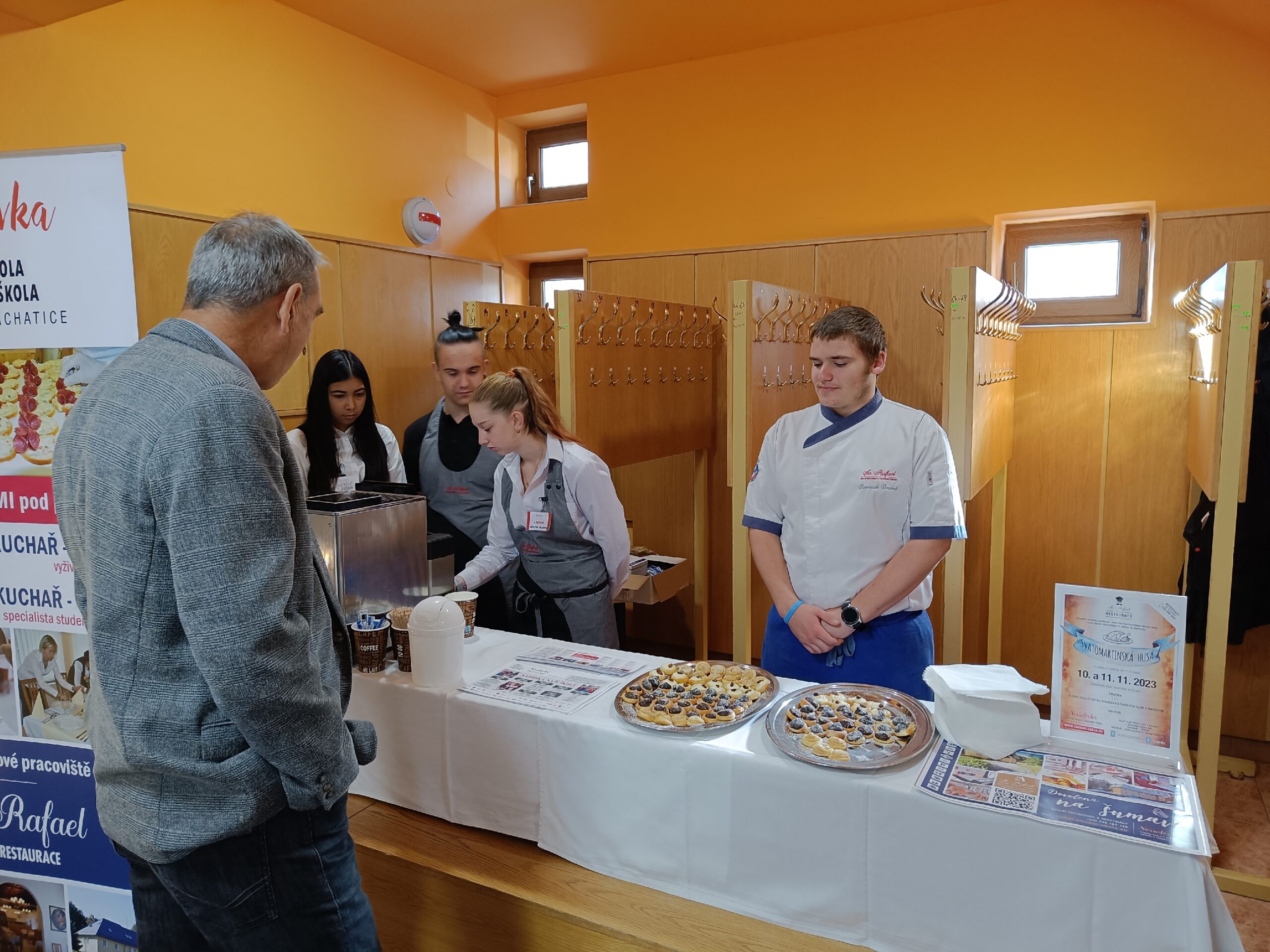 Uchazeči o studium mohli využít odborné konzultace přímo se zástupci naší školy. Vyzkoušeli si polyfúzní svařování, svařování na svářečském simulátoru a seznámili se s tiskem na 3-D tiskárně. Žákyně oboru Kadeřník – vizážista zajišťovaly pod vedením učitelky odborného výcviku případným zájemcům diagnostiku pleti nebo úpravu vlasů. Obor Kuchař – číšník se zase staral o občerstvení pro návštěvníky našeho stánku. Díky danému časovému rozvrhu měla každá škola dostatek času a prostoru k prohlídce a dotazům.