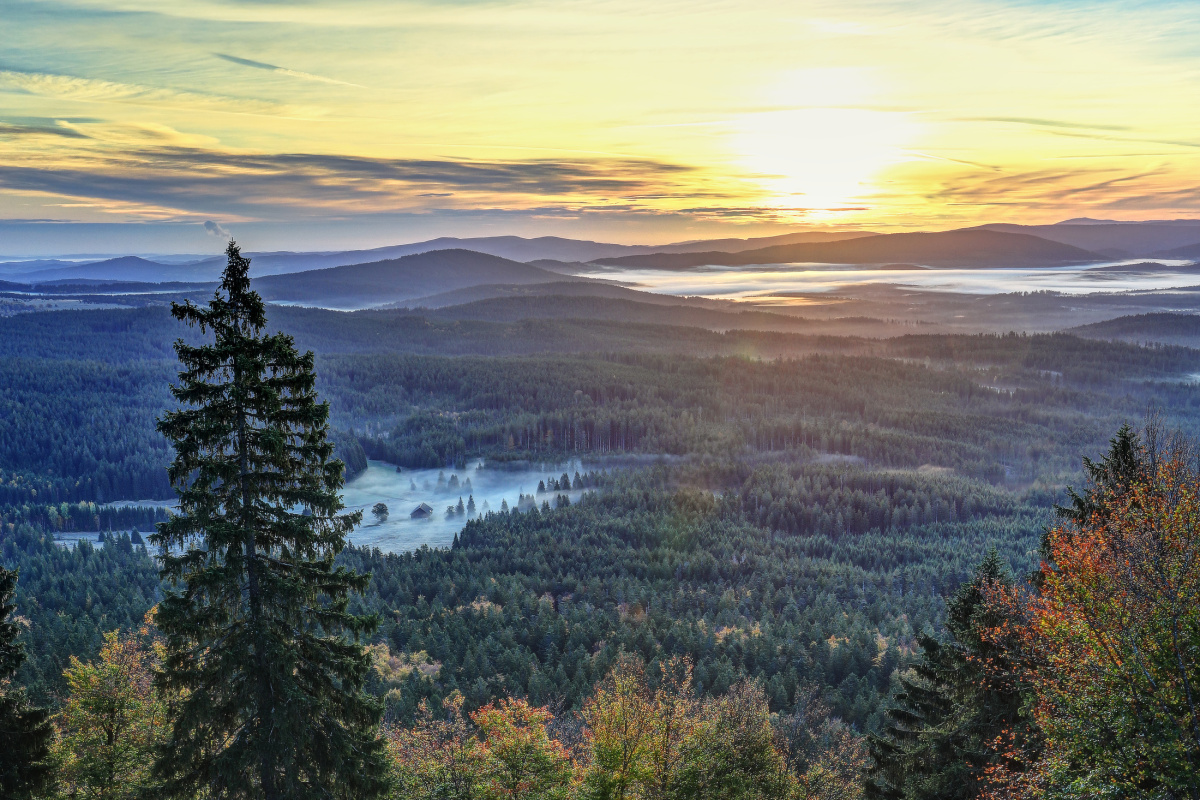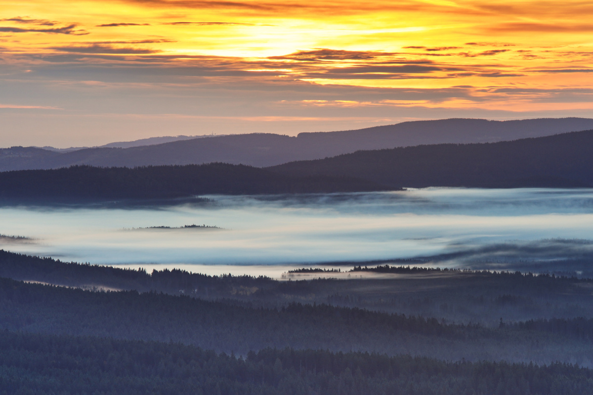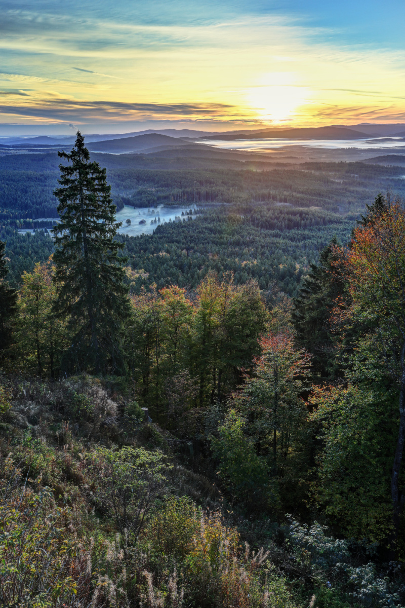 V pondělí jsem jel brzy ráno na jisté počasí s mlhami v údolích na Pancíř a nafotil svítání. Bylo to super, v dálce se ukázaly i Alpy. Po rychlém presu na horské chatě rychle na Ostrý a ještě po cestě pár snímků z různých míst. Za dopoledne jsem toho stihl celkem hodně. Šumava se konečně začala barvit, je to paráda.
