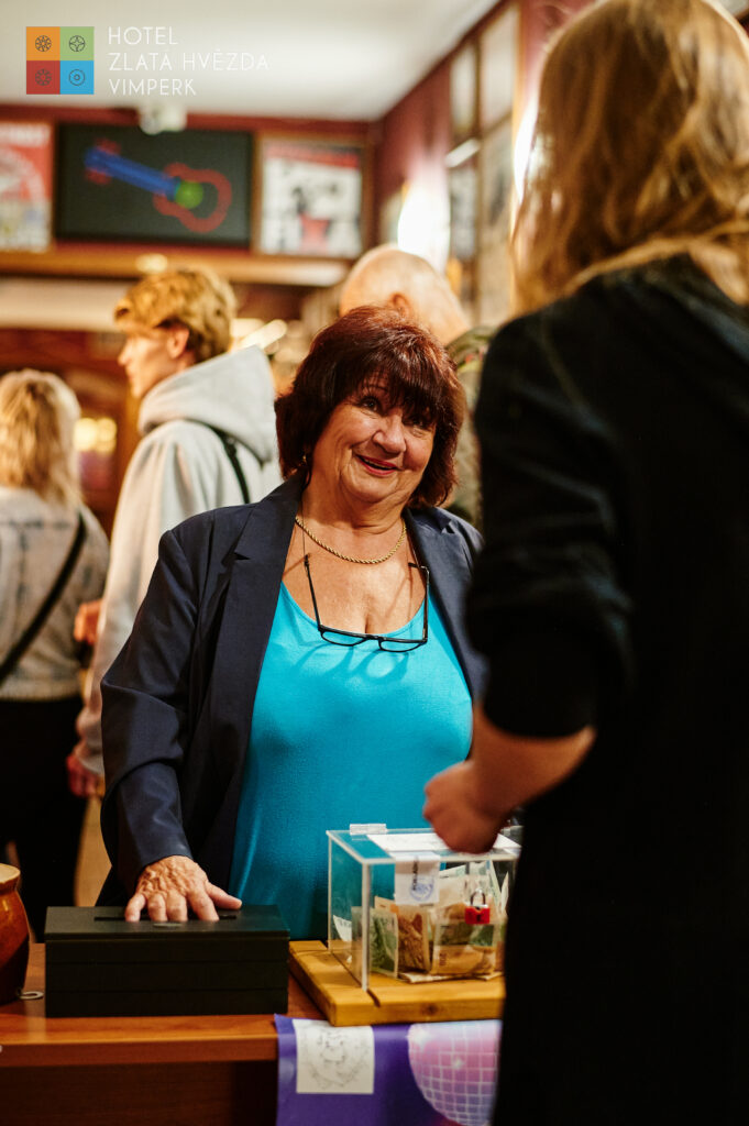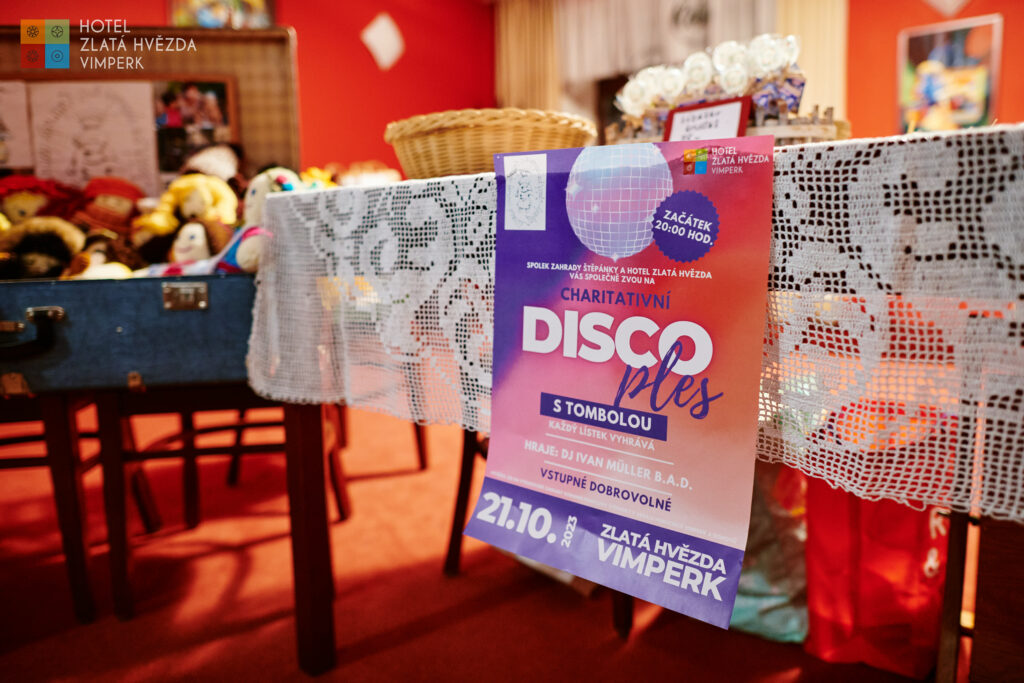 fotkami bychom Vám všem chtěli připomenout CHARITATIVNÍ DISCO PLES PLNÝ OSLAV, který dne 21.10.2023 pořádal hotel Zlatá hvězda a Sdružení princezny Štěpánky. Především však chceme poděkovat vám všem za příspěvek, který bude použit na další budování okrasné a odpočinkové zahrady v prostorách BH Nemocnice ve Vimperku. Celkově jste přispěli neuvěřitelných 19 794 Kč. Díky vimperským podnikatelům VAVI s.r.o, MAXI HIT, Spolek Slunečnice, Mydlinky od Boubína, AVON Lahovcová Iveta, Just Nahrin, Alena Popelinská, PP Styl Pavlína Pankratzová, Fitness Centrum Vimperk „Move To Live“ Míša Sochová, Koupelny Obselka, R+R Móda, Železářství – Kuchyňka, Sport 11 Šumava, Gomi Originální rukodělná móda, Cukrárna Pod Zámkem manželé Kůrkovi, Šperky, Korálky Červená, Dárky u Kocoura, Trafika Camélie, Zdeňka Heřtová, Kavárna Hrunek, Květinářství Anička, Hračky U Krtečka, Květinovka V &V Věra Bártová, Bytový textil p. Cafourková udělalo celkem 161 cen v tombole radost. Panenka Štěpánka se vydražila za 1 200 Kč, z čehož měli zase radost klienti Domova, kteří ji spolu se sestřičkami vyrobili. Poděkování patří manželům Jolaně a Zdenkovi Kutilovým a personálu Hotelu Hvězda, kteří věnovali uvítací welcome drink a občerstvení ve formě rautu. Poděkování patří také Dj Ivanu Müllerovi, který nás provázel celým večerem. A že byl večer opravdu zábavný dosvědčují fotky, kde se určitě každý najde. Tak ještě jednou děkujeme úplně všem a těšíme se zase příště.