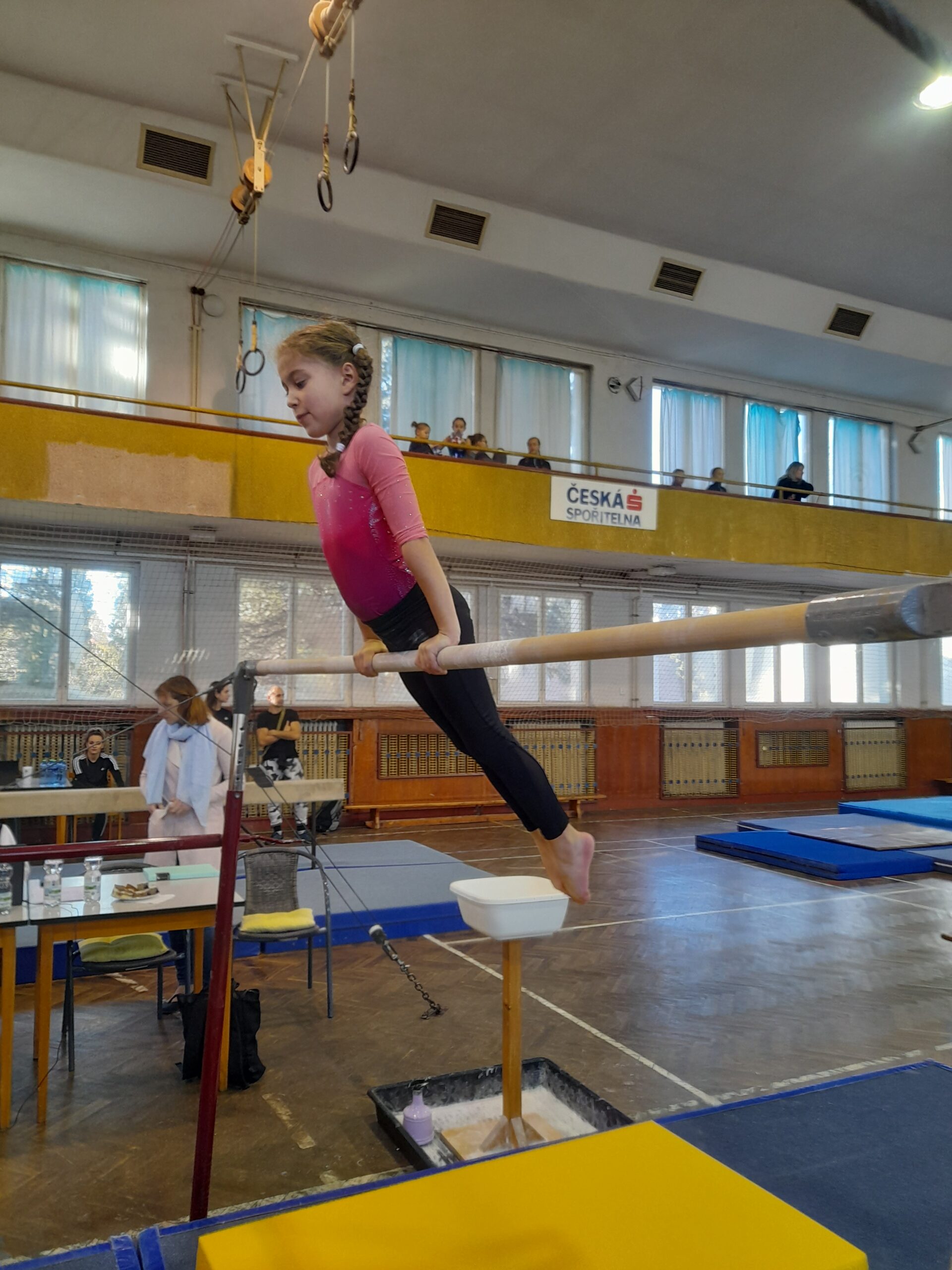 vyšší známku než v minulém závodě. Salma Sichingerová (8. m.) si tentokrát vybrala smůlu na bradlech a kladině. Naproti tomu se jí moc povedla sestava na prostných.
