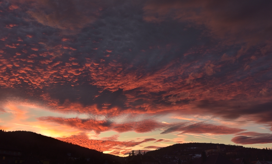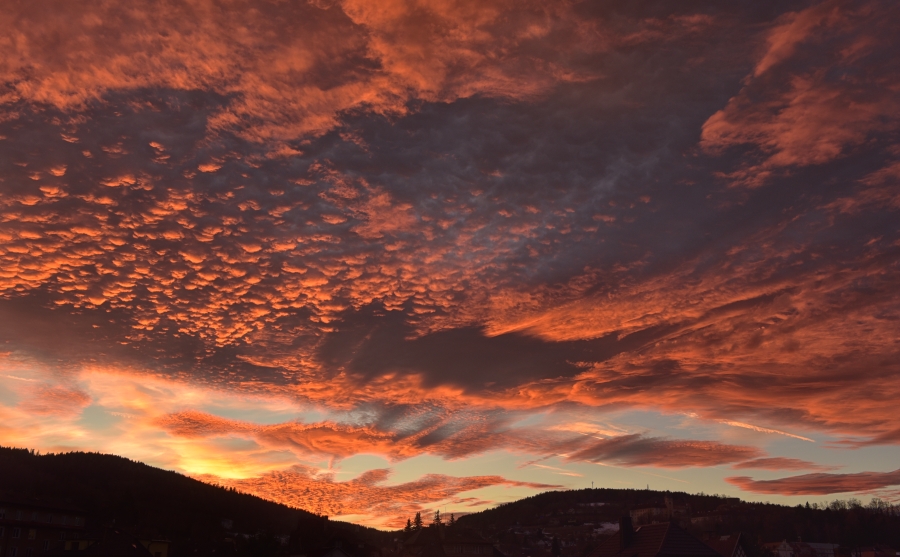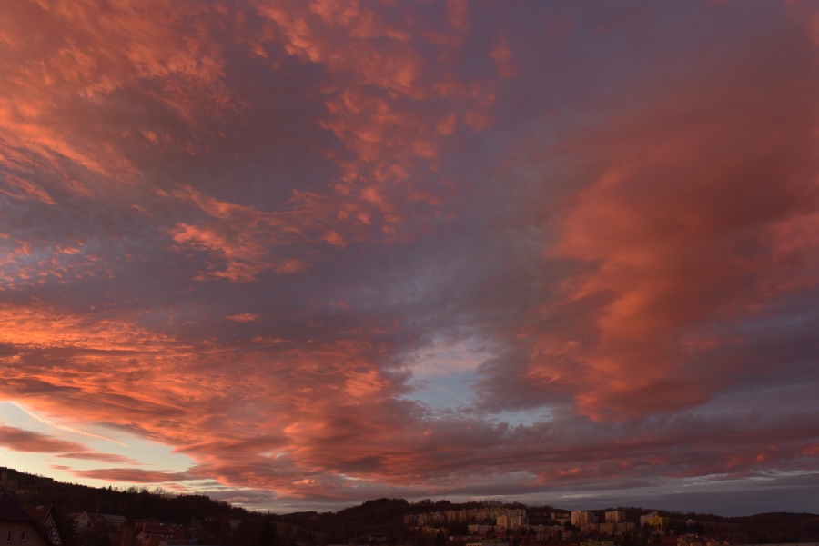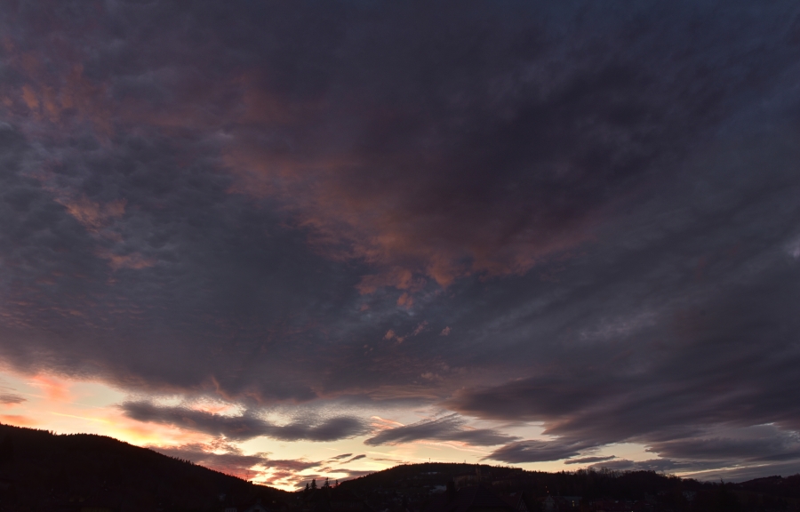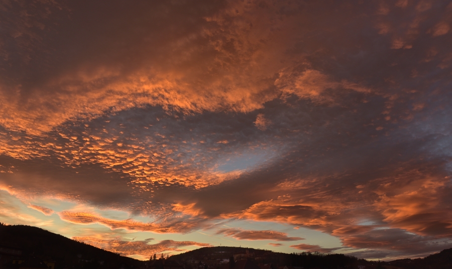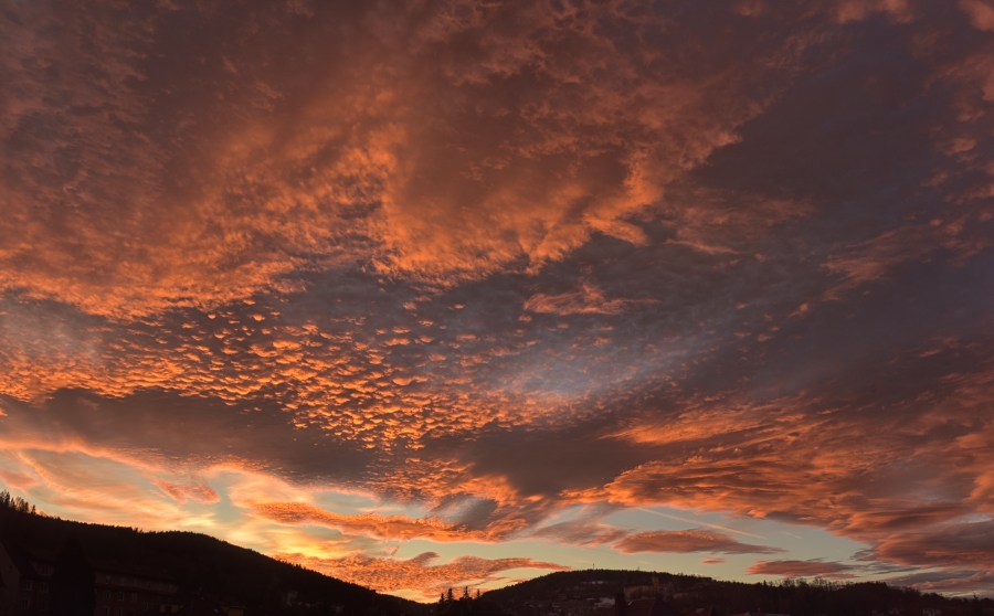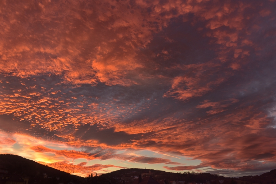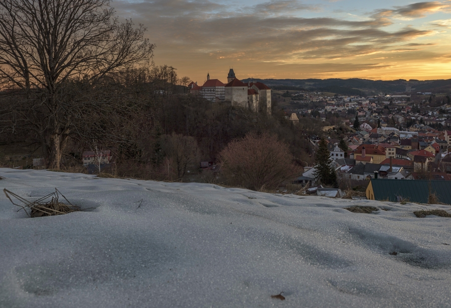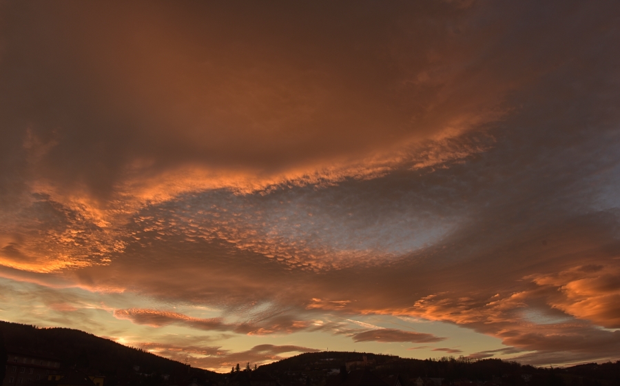 Vimperku a všem níže položeným lokalitám sice zůstala i tentokrát v čase vánočním zimní poezie odepřenou, ale aspoň sváteční večerní obloha se snažila barevně kouzlit.