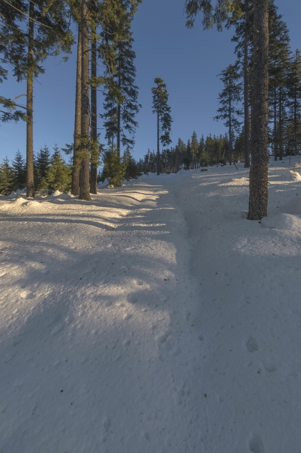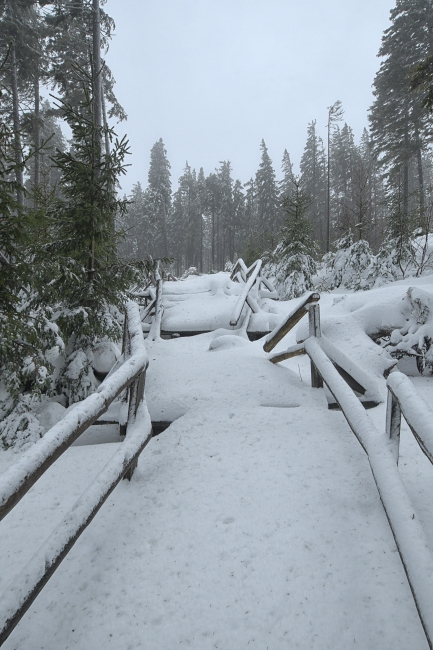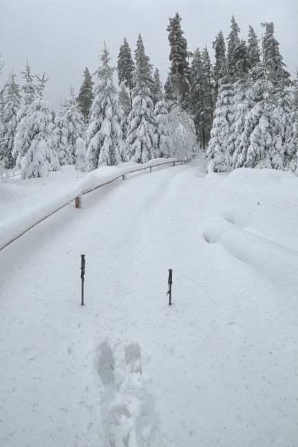 … navíc místy zapadajících do skutečně poctivých závějí, zrovna v těchto boubínských partiích ovšem jinak nepřekvapujících.