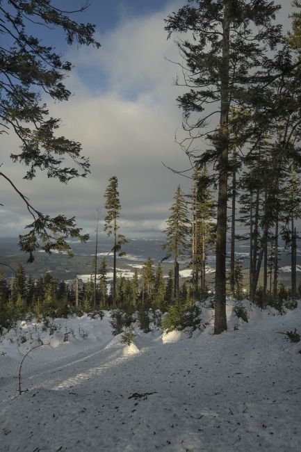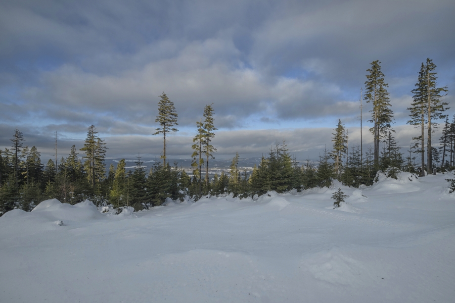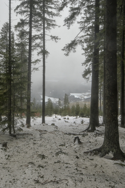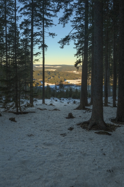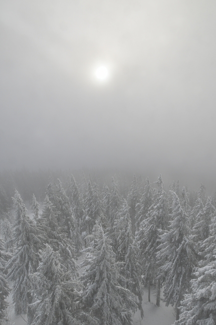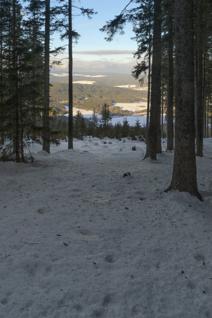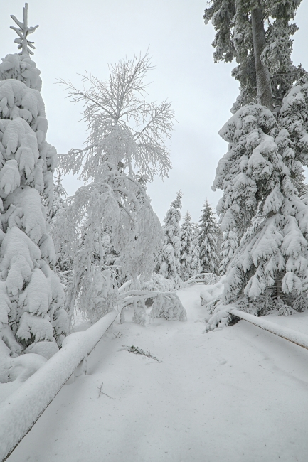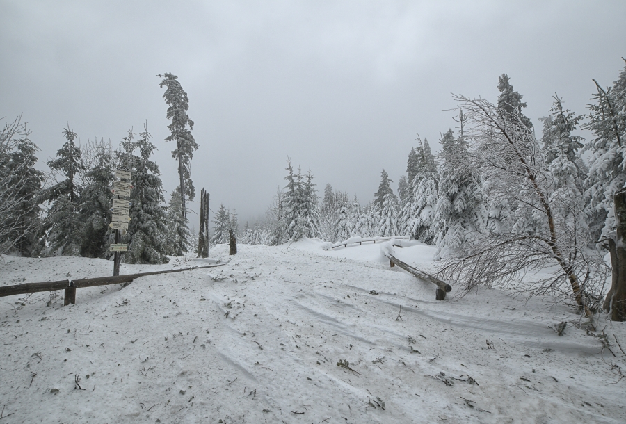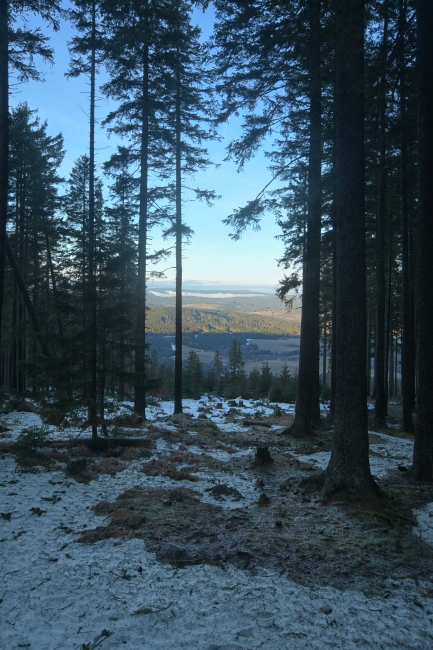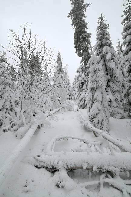 Jak vidno, okolní smrčiny si místy dokázaly na severní straně udržet zbytky bělostné výzdoby.