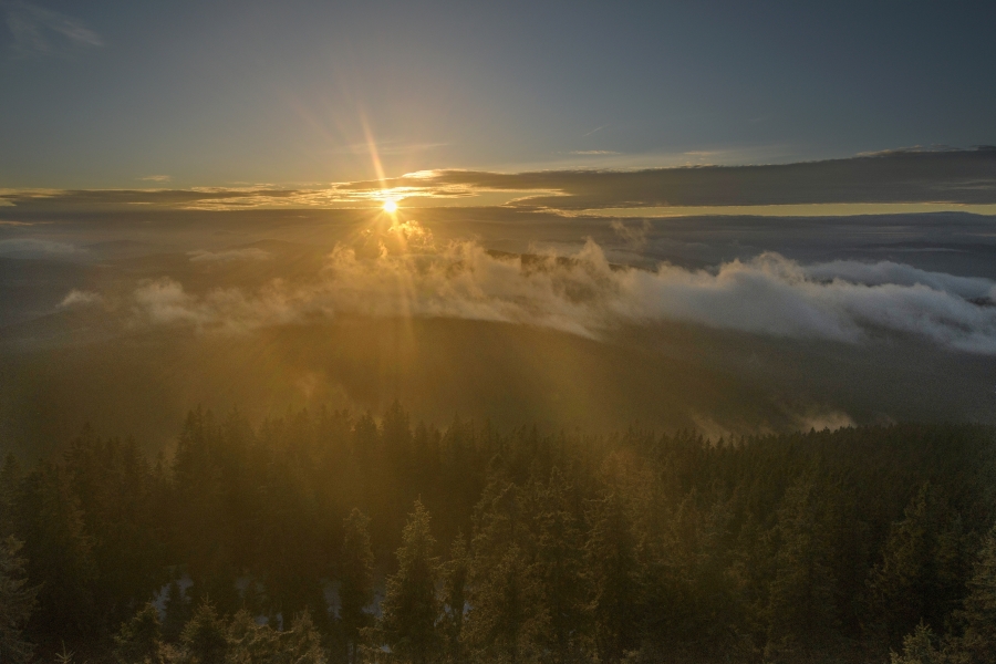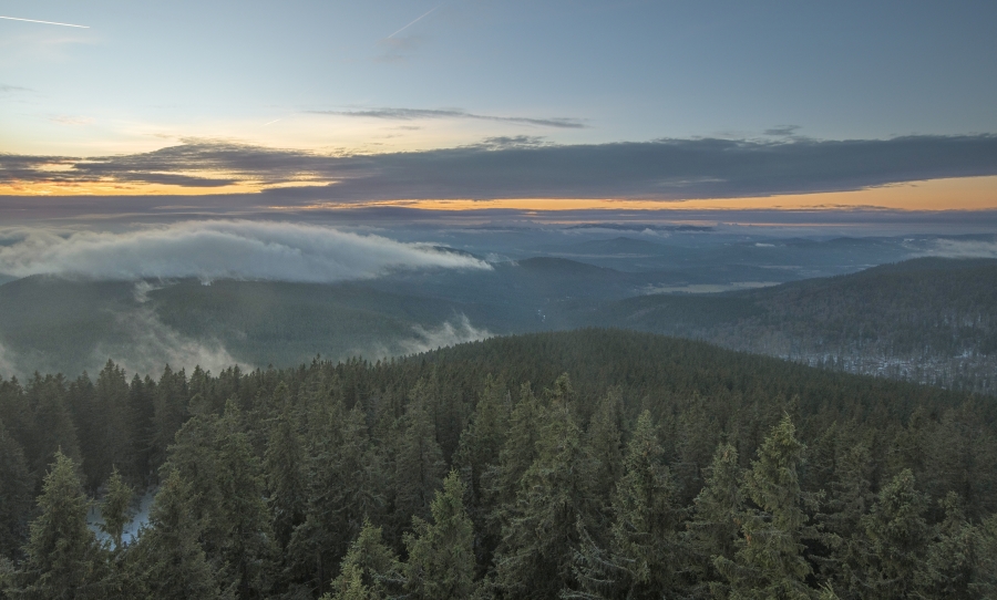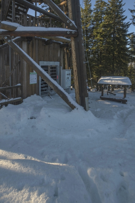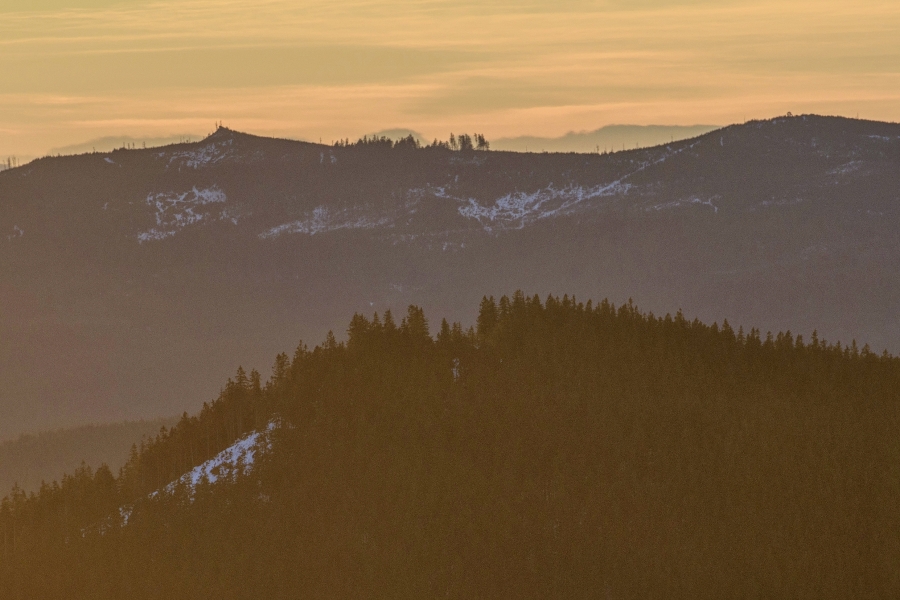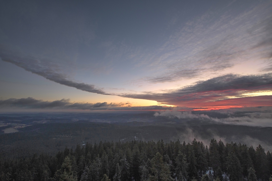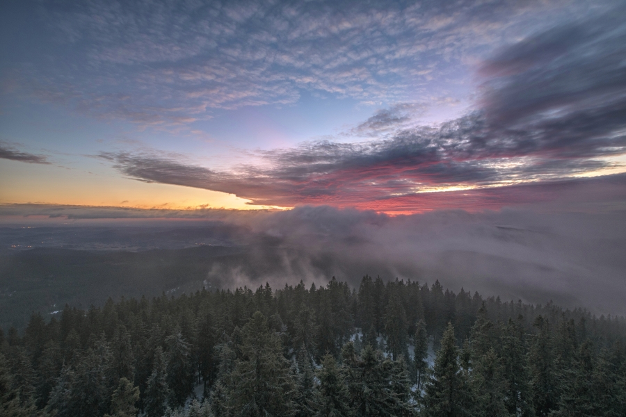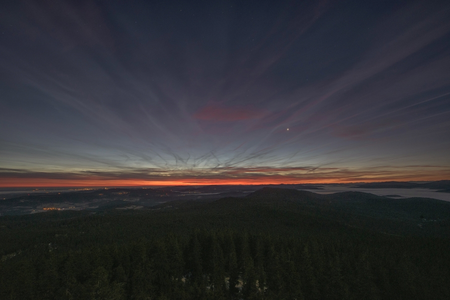 … přičemž všechna ta nádhera byla zcela bezproblémově zachytitelná zásluhou překvapivě nízké návštěvnosti rozhledny, již soustavně nerozechvívalo nepřetržité dupání po schodech – úhlavní to nepřítel dlouhých fotografických expozičních časů. Těžko říci, jestli většina skalních příznivců silvestrovských výstupů zlenivěla, případně v minulosti svou účast vázala na zvláštní silvestrovské vlaky, jejichž éra, jak se zdá, skončila vlivem covidových let, ale příznivcům fotografování tu někdejší přívaly turistů rozhodně nechyběly.