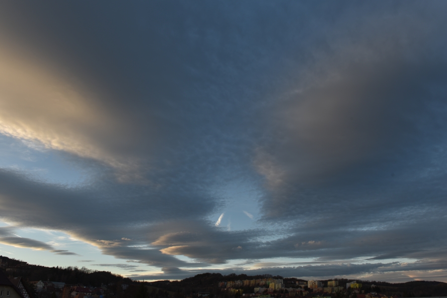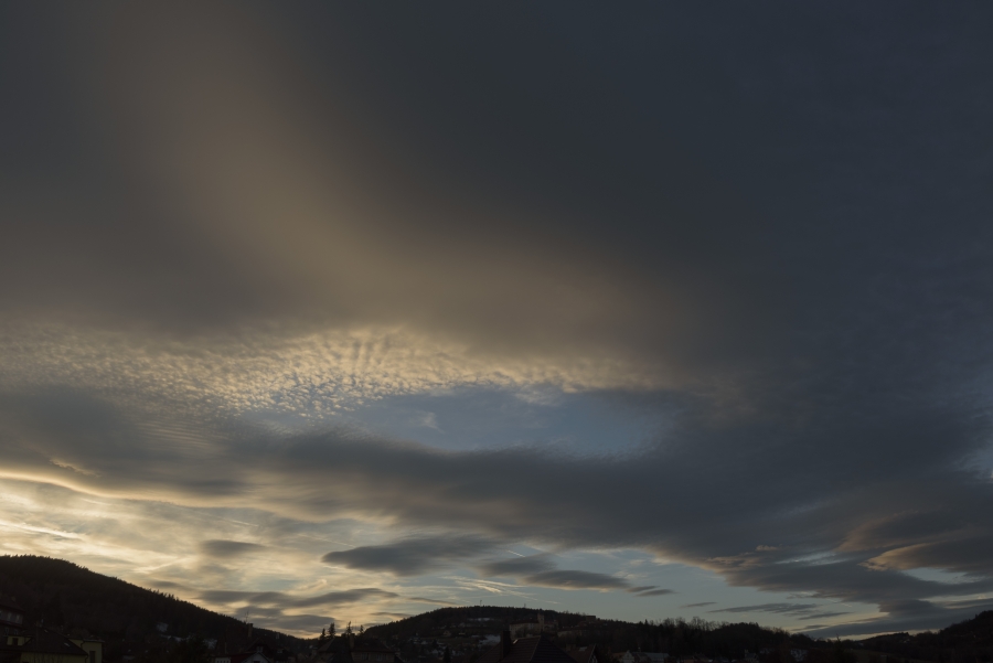 V jediné večerní chvilce jinak celkem průměrně deštivého dne se nechce věřit očím … vrací se snad počátek prosince? Či se to jen zimní slunovrat, připadající letos právě na dnešek – 4:29 – chce konečně odpovídajícím způsobem pochlapit?