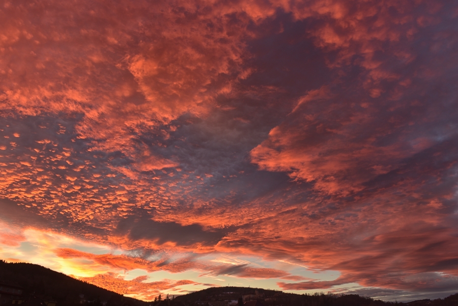 Sluneční kotouč si pro svůj vstup uchystal karmínovou nádheru, …