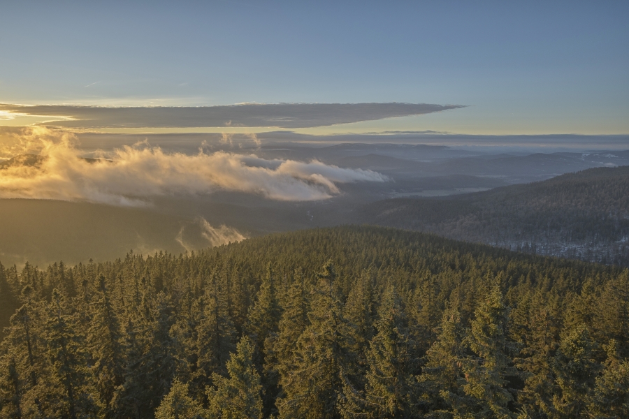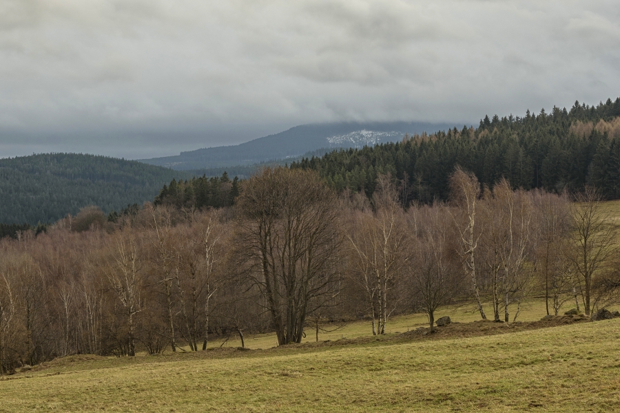 Mářský vrch nenáleží k šumavským velikánům, takže jej za dnešní bohaté, ba o tyto škrtající oblačnosti nestihl podobný osud …