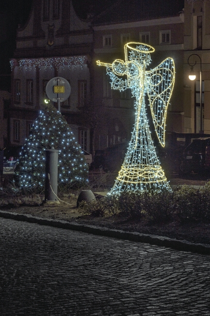 I ten andělský muzikus se patrně nestačí divit, jak rychle mu vimperské náměstí mění před očima barvy.