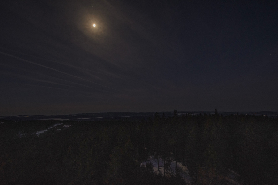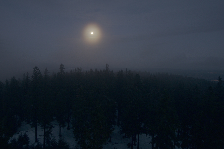 … Boubín svou vleklou mlžnou čepici na rozloučenou s rokem 2023 přece jen sňal. Vpustil tak do hry nejen ubývající úplněk se všemi jeho korónami, ba chvílemi též parádními halovými kruhy, …