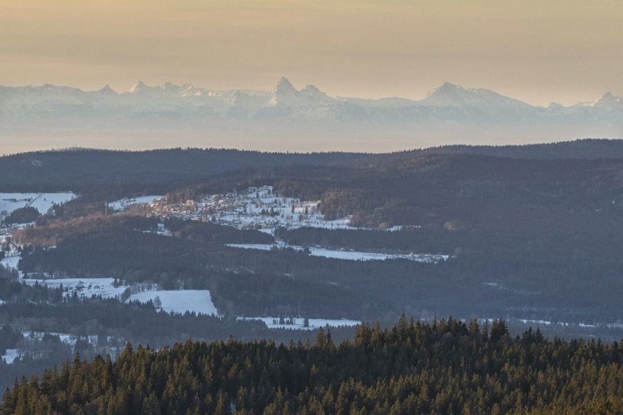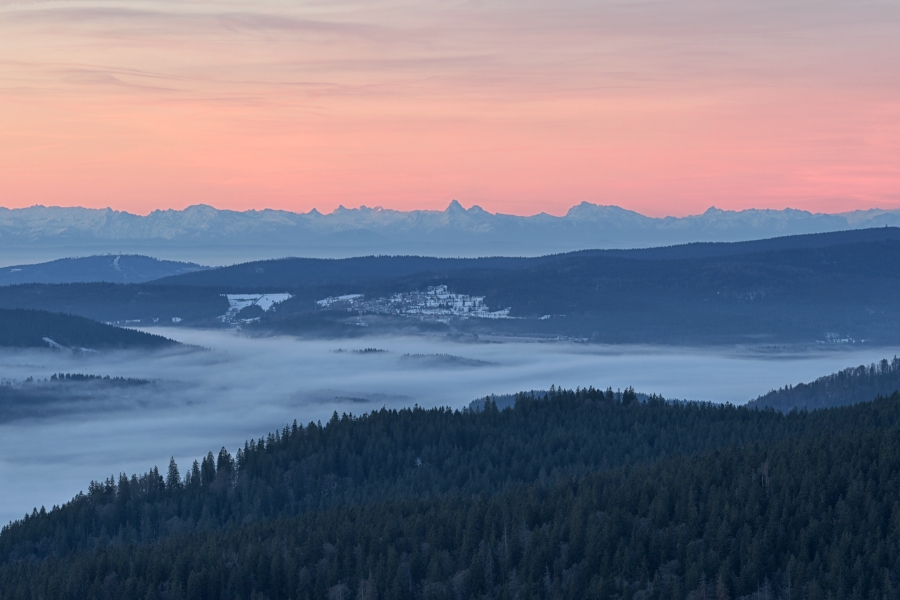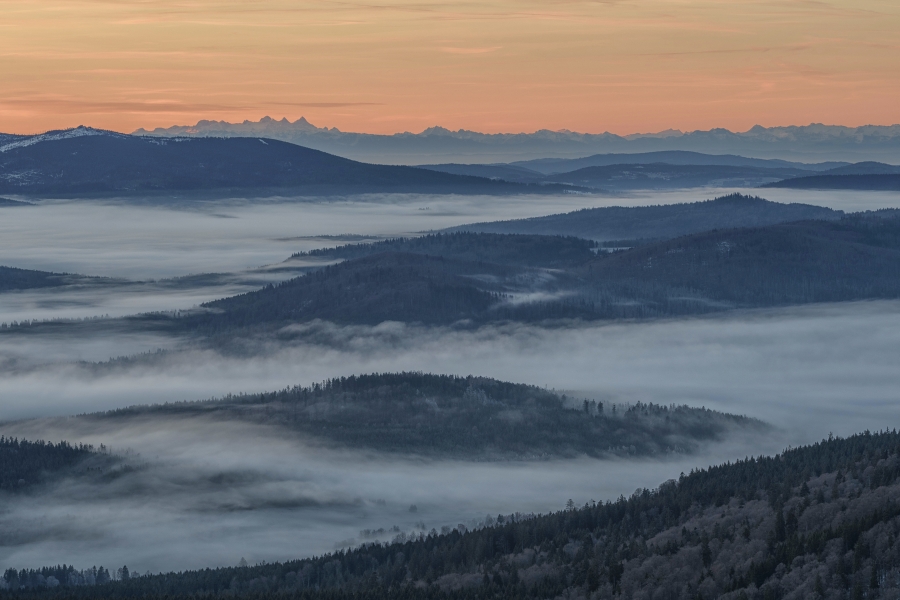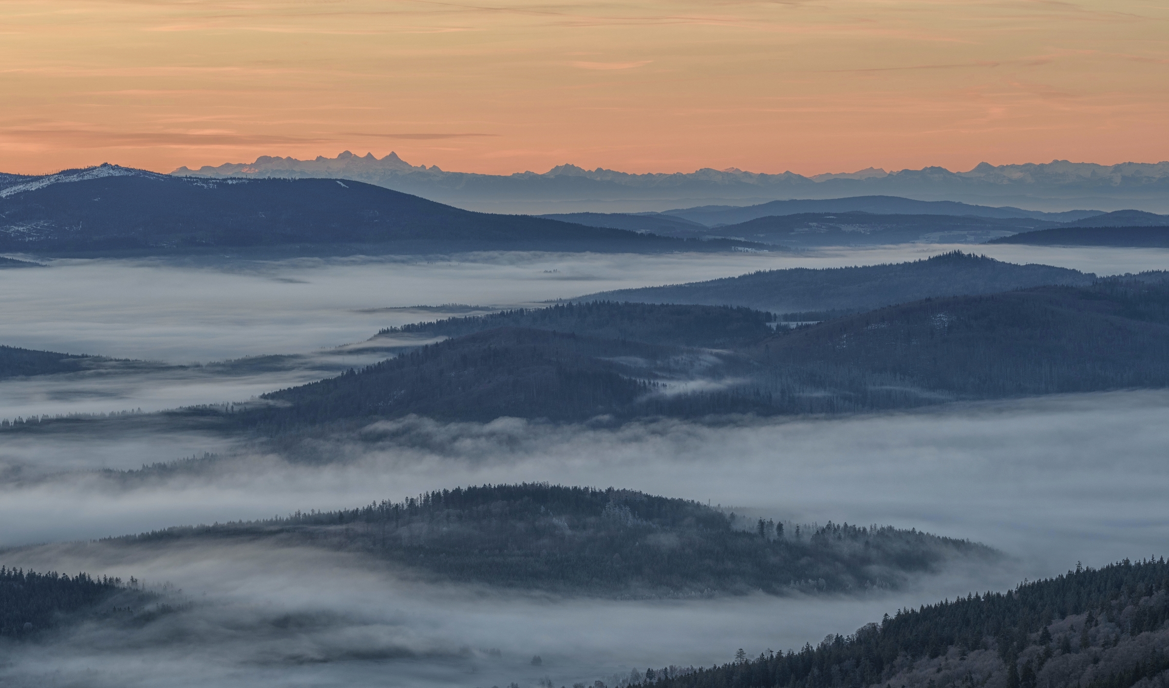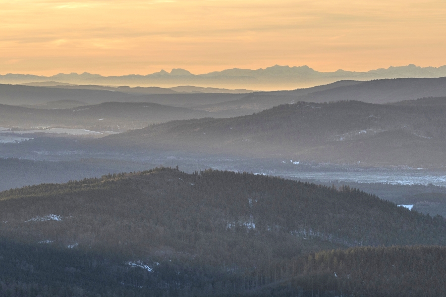 … s opticky nízko posazenou oblačností, spolehlivě dnes zakrývající celý obvykle viditelný alpský pás …
