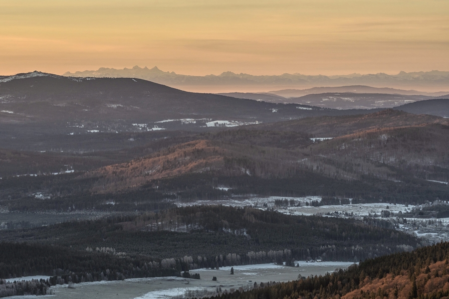 Pohledy z Boubína mohou v posledních dnech nejnápadněji ukázat jediné: nižší polohy se stále výrazněji zbavují sněhu a vyhlídka na bílé Vánoce se tam, nedojde-li k zázraku, dokonale rozplývá.