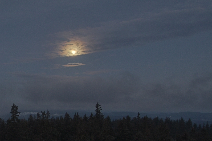 Již během včerejší svatoštěpánské noci měsíční kotouč finalizoval k poslednímu letošnímu úplňku, jehož fáze dosáhl dnes v čase 1:32, ve znamení Raka. V průběhu noci byl zásluhou příhodné oblačnosti nejednou obklopen půvabnými korónami, provázejícími i výstup na Boubín.
