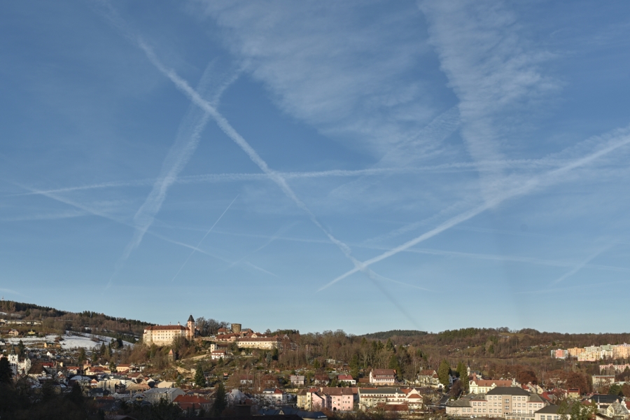 … ale především umožnil v plném rozsahu si vychutnat velkolepé barevné představení, v němž společně se sluneční září hrály hlavní roli stopy bohaté letecké dopravy.