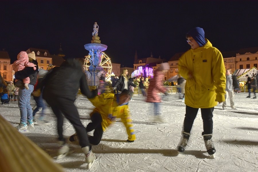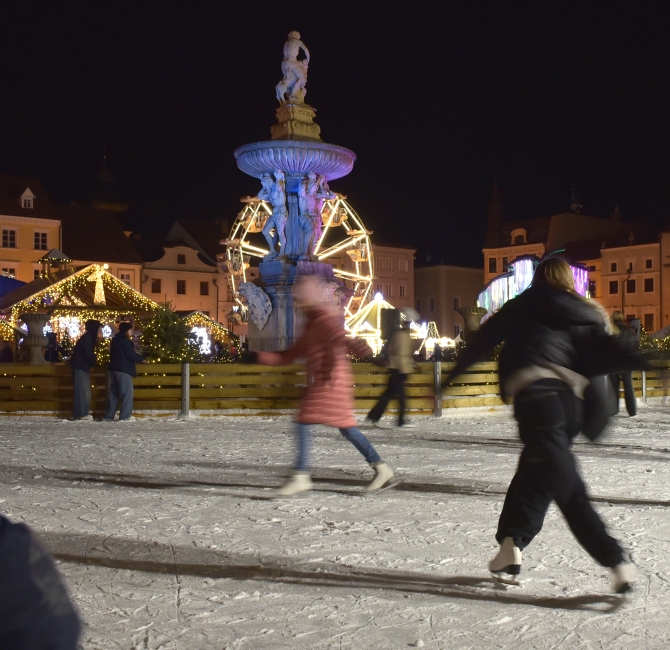 … zde zůstalo kluziště poblíž historické Samsonovy kašny.