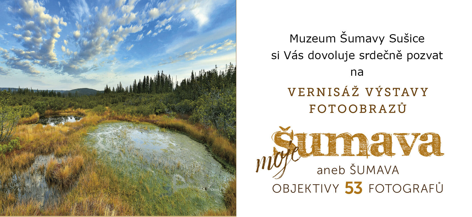 Muzeum Šumavy Sušice si Vás dovoluje srdečně pozvat ve středu 6. prosince 2023 v 17:00 hodin na vernisáž výstavy fotoobrazů Moje Šumava aneb Šumava objektivy 53 fotografů.